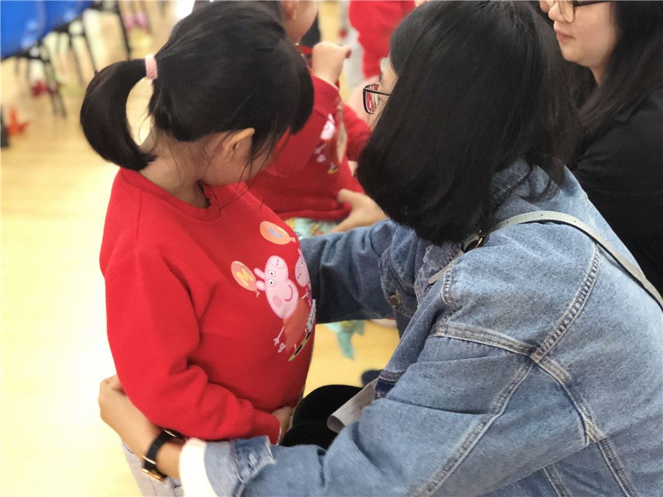 吃完点心我们就要跟着老师一起去学本领啦!爱的印记,我们今天也要来当一当妈妈。感受一下妈妈怀着我们的不容易。