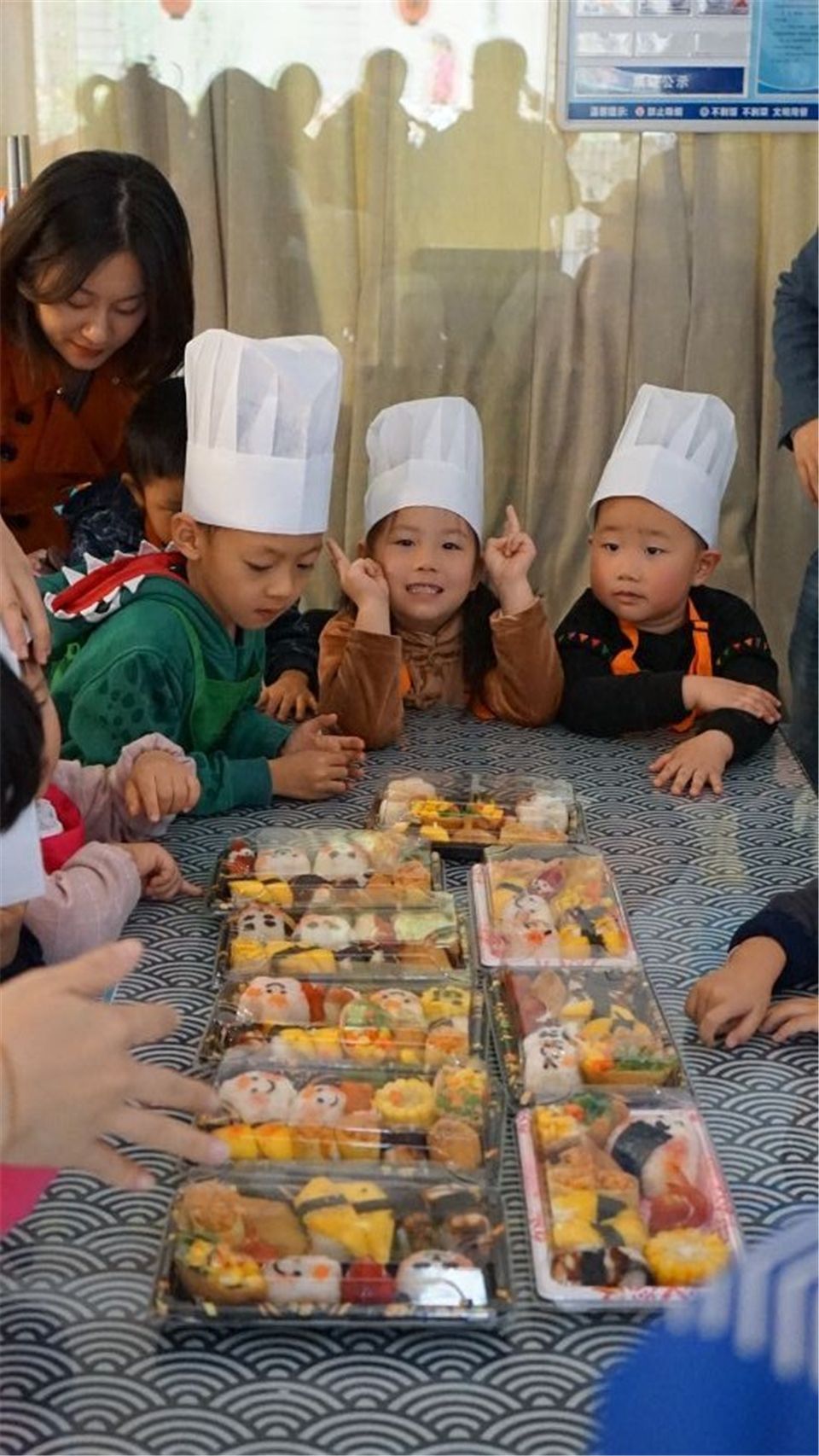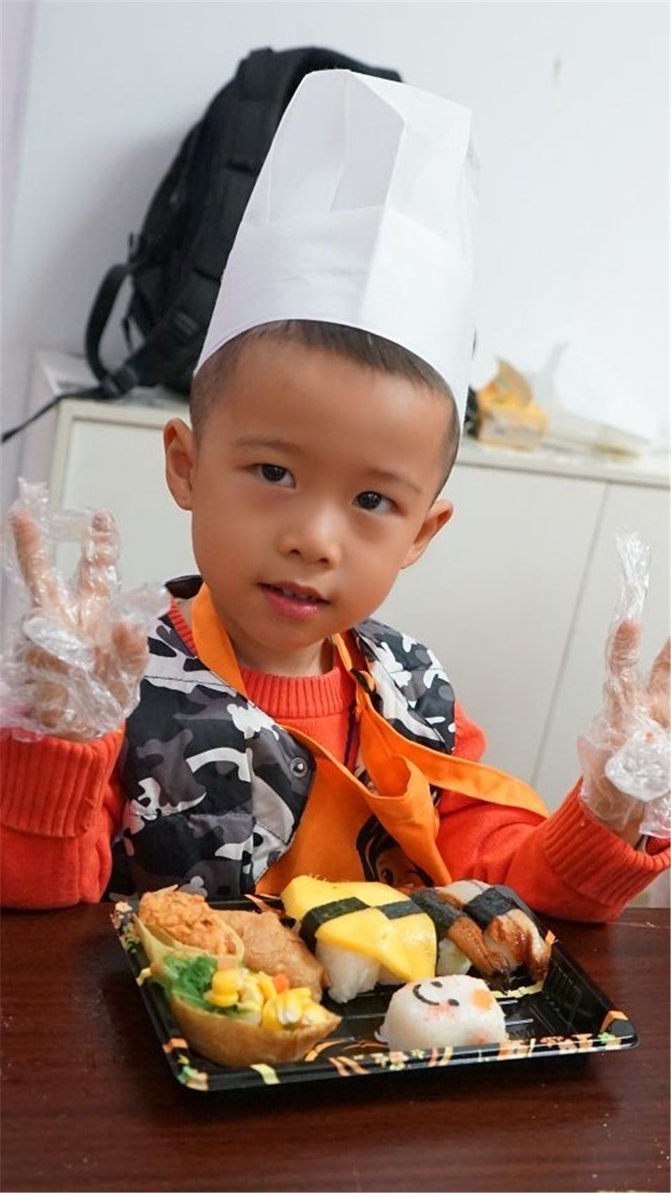 不一会儿功夫,小朋友们都做出了自己想要的满意的寿司,品种繁多,真是琳琅满目,色香味俱全,真是太赞啦!