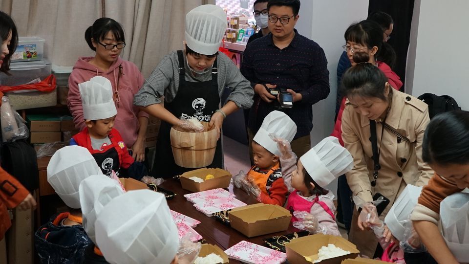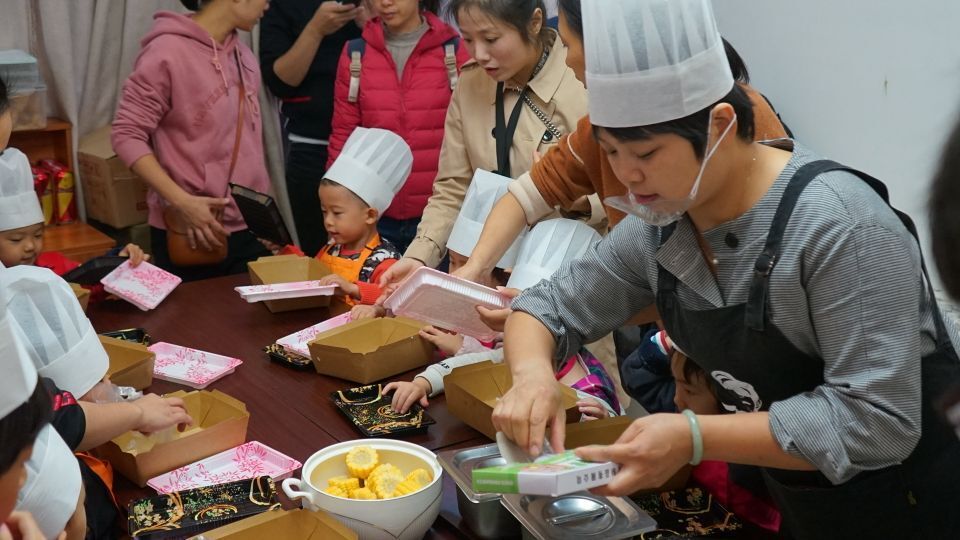 终于到了大家最期待的环节——寿司DIY啦!只见戴着厨师帽的阿姨拿来了一个大木桶,里面装着白白的、热热的、香喷喷的米饭,哈哈,大家可好奇了。