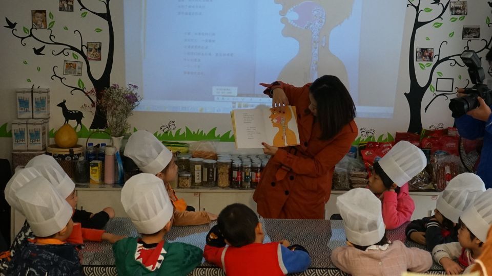 在这多彩的初冬季节里,周末的清晨,伴着阵阵微风,中三班“虫虫故事会”小组开展了“认识果蔬、动动巧手、制作美食” 的亲子活动。大家在享受亲子阅读的同时也边尝试寿司DIY,让大家在动手做寿司的过程中了解食物的多样性。小朋友们围坐在“读书妈妈”的身边聚精会神地听着故事《食物的神奇旅行》,伴随着温柔细腻的朗读,拉开了本次“虫虫故事会”的序幕!
