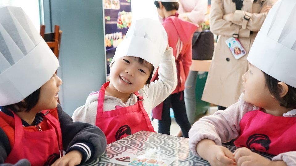 阿姨告诉我们,寿司的种类非常多,有鸡蛋寿司、有鳗鱼军舰寿司、有 Kitty猫寿司、有草莓寿司、有小星星寿司等……阿姨一一耐心详细讲解示范着,哈哈,大家听得津津有味!