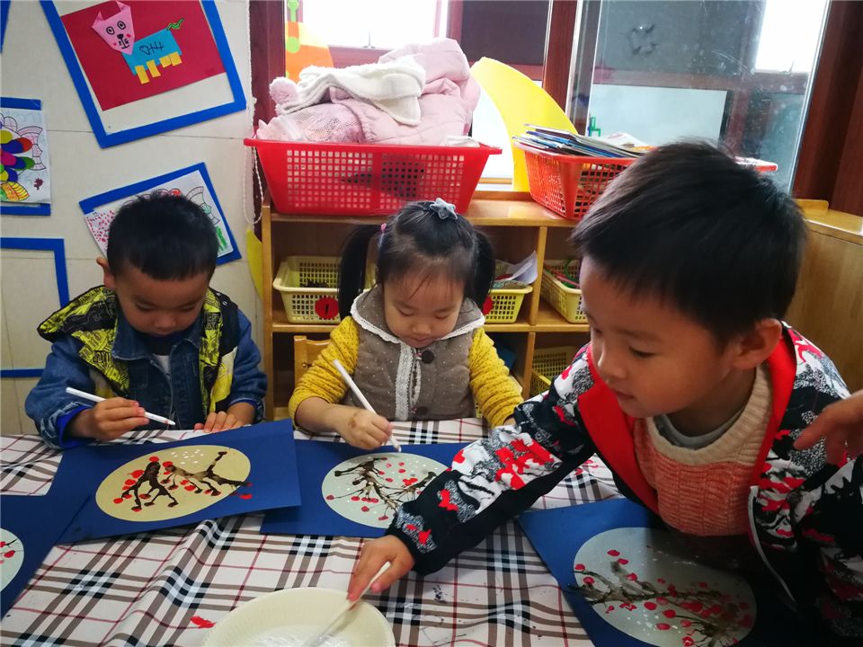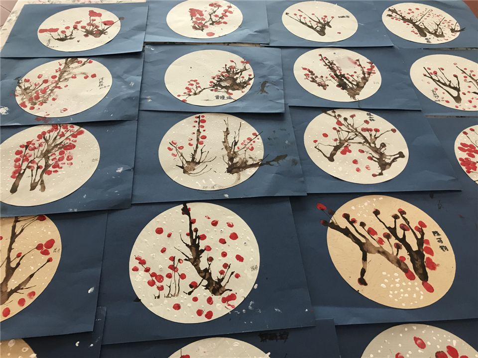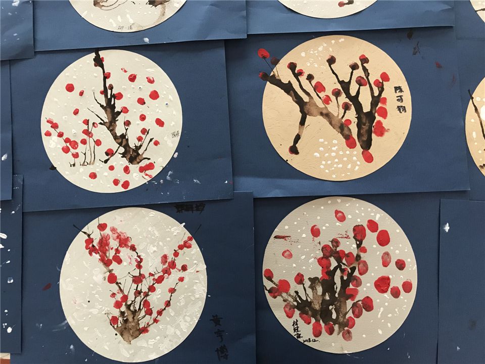 “寻常一样窗前月,材料有梅花便不同”,一幅一幅美丽的窗前梅花鲜艳地绽放满屋,我们的小朋友们俨然成了国画大师,一起欣赏着美丽的作品,小朋友们笑得就像盛开的梅花一样灿烂.....