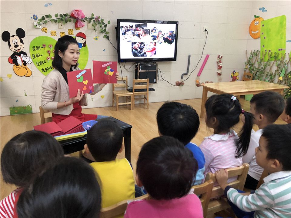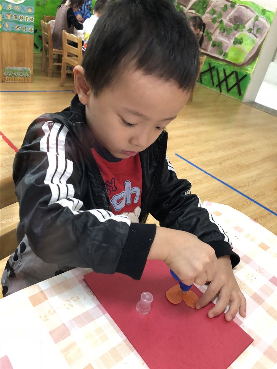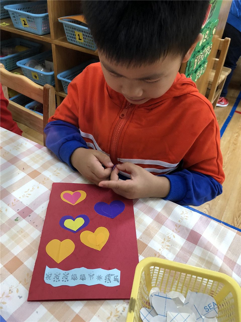 “哇!是贺卡,今天我们要做贺卡咯。” “做完可以拿回家送给爷爷奶奶呢!”那当然了,宝贝们要认真学哦,用你们对爷爷奶奶的爱来用心的做出一份最漂亮的贺卡!