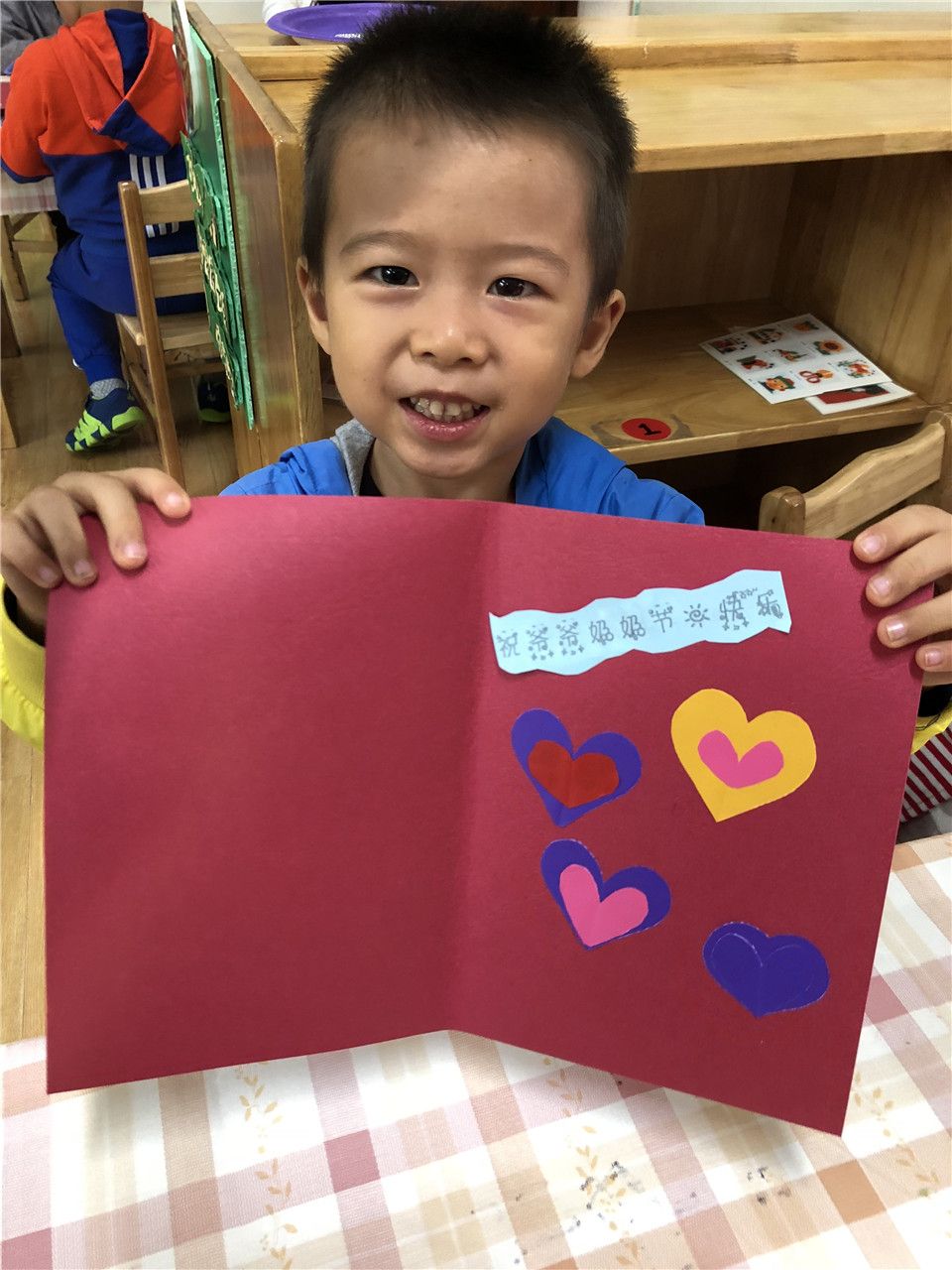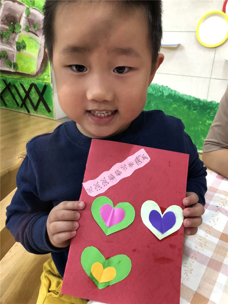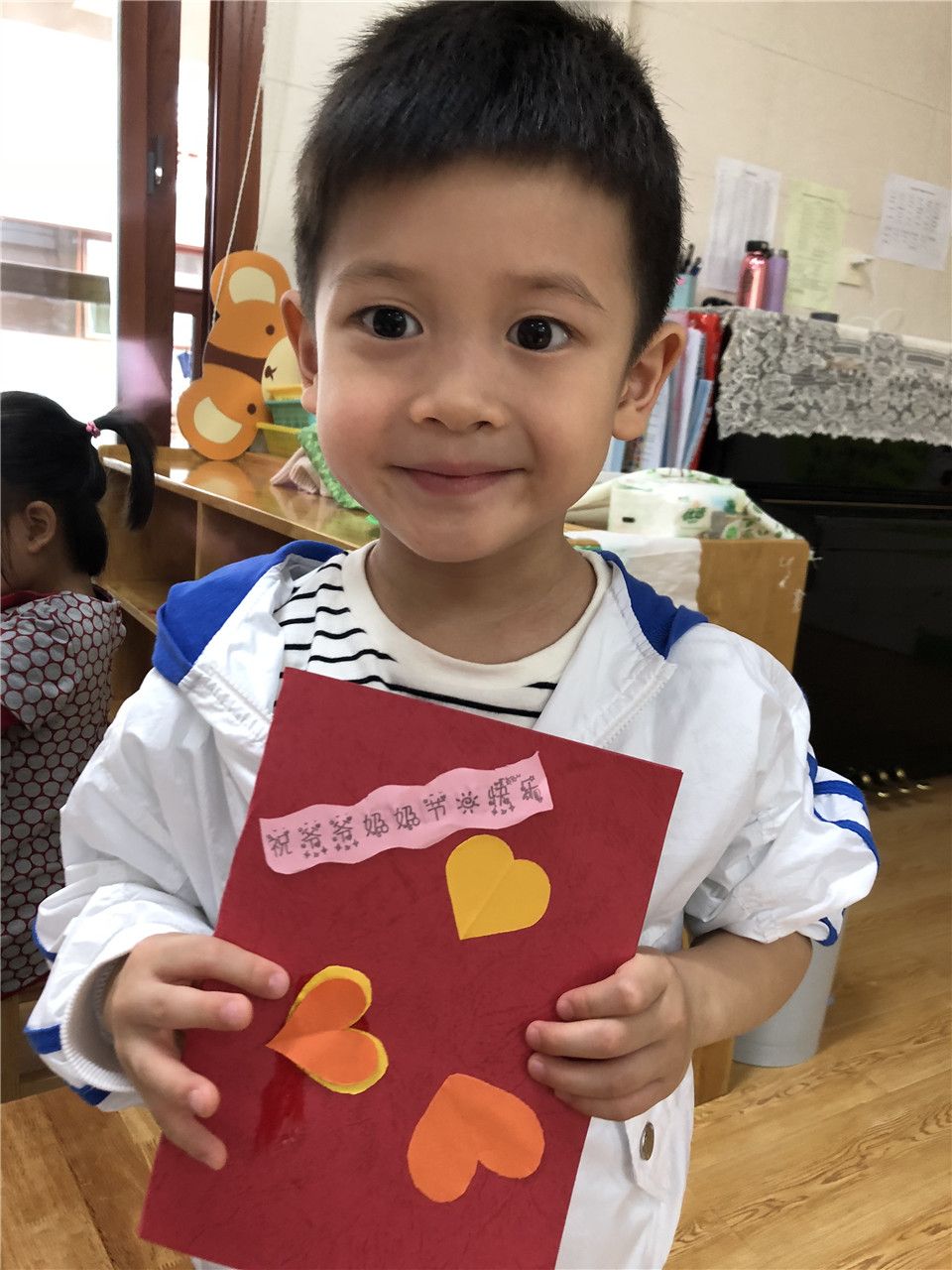 宝贝们手举着亲手做的贺卡,心里美滋滋的,脸上绽放着无比灿烂的笑容。“瞧!我们的贺卡多漂亮,我们一起来合照吧!” “我们要把贺卡带回家咯!”我们一起大声地说出:“祝爷爷奶奶节日快乐,耶!”