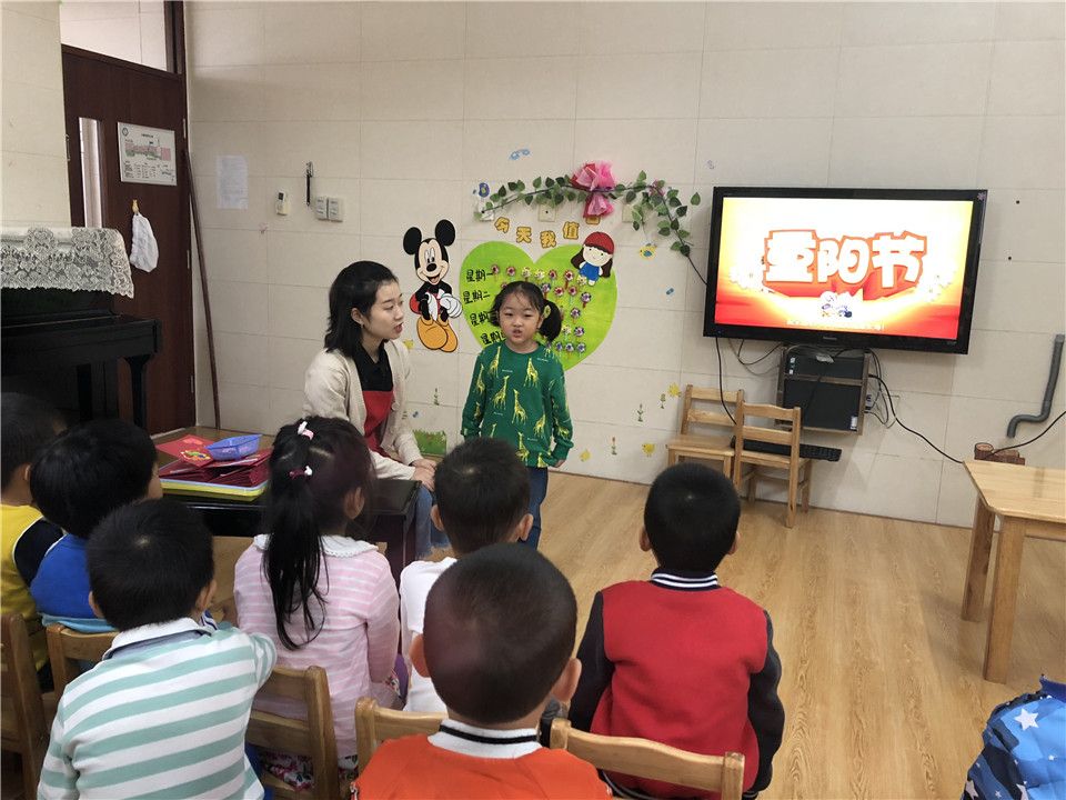 “老师,我有一个小秘密要告诉你哦。” “宝贝,你说。” “我知道今天是重阳节,是爷爷奶奶的节日!”“我也知道。”“我们也知道呢。”