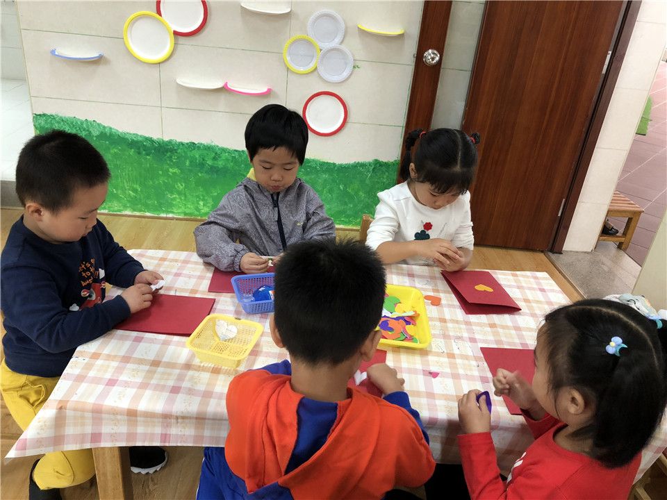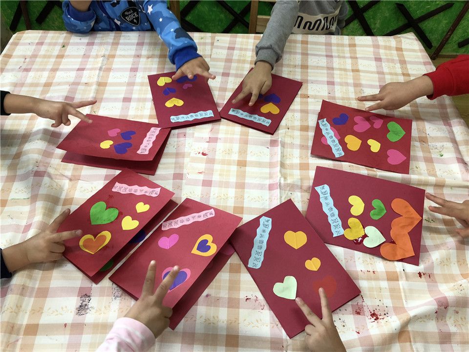 “你们瞧,我的贺卡做完了呢,这是世界上最好看的贺卡!”“老师,您瞧,我的也做好咯!”