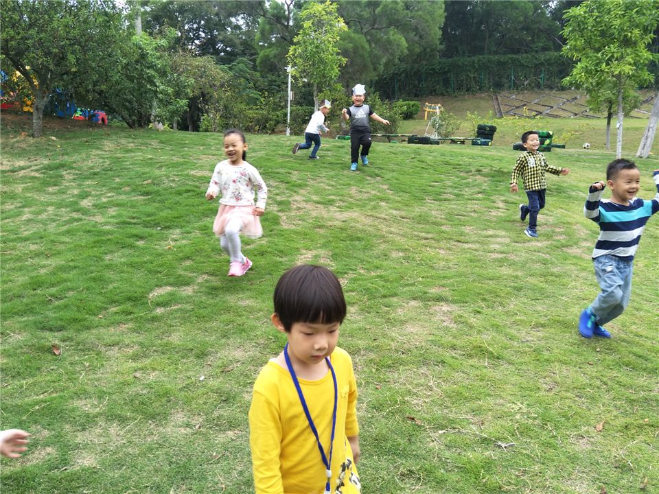 金金:“我们在玩老狼老狼几点钟,没错我扮演的是凶猛的老狼,等下我要跑慢点,下坡的时候吓得小朋友摔倒可就不好了。”