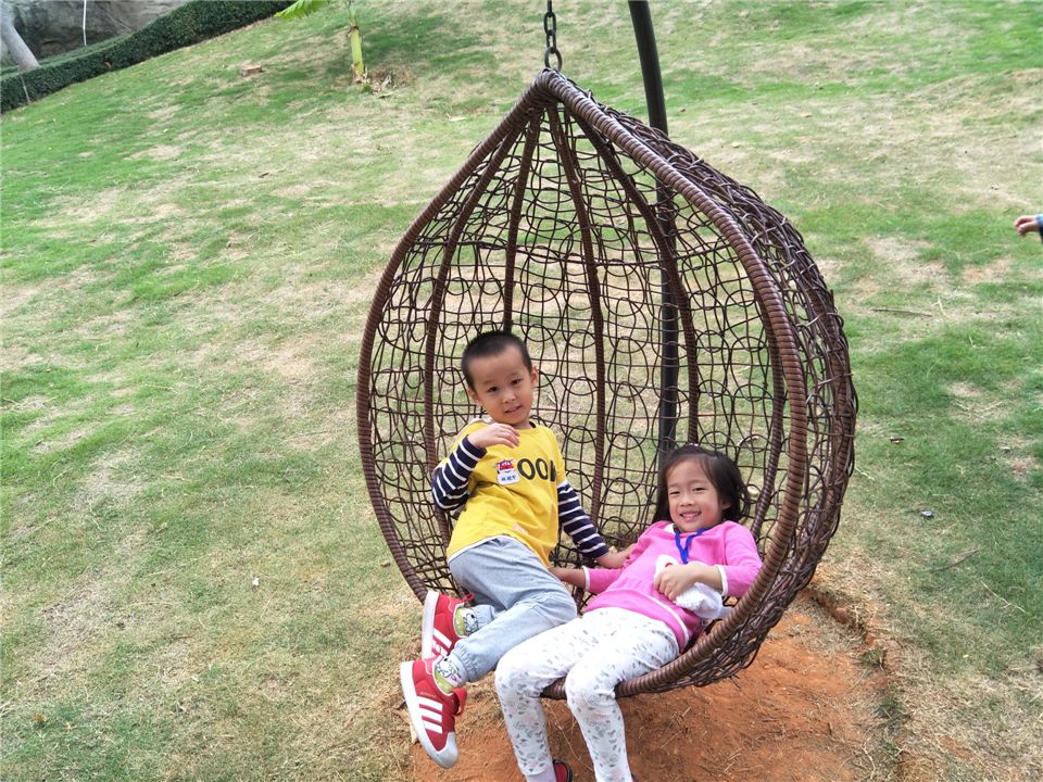 弟弟:“我们还是到秋千椅上休息一会最舒服!”
