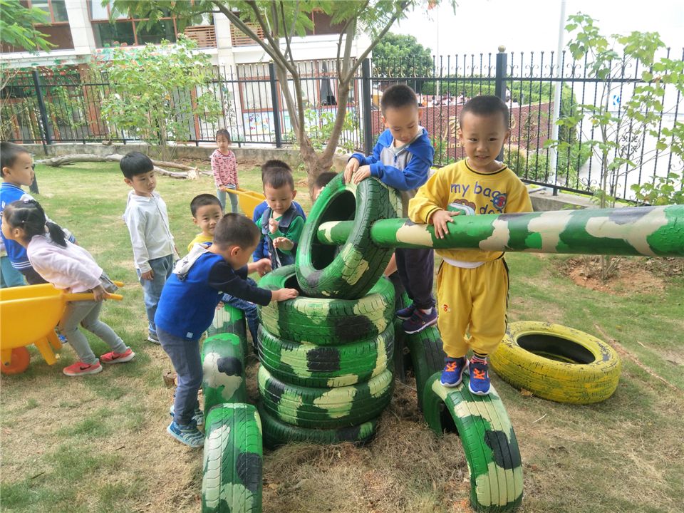 看完我们幼儿园的好玩有趣的淘气堡,再和我们一起到小山坡野战基地看看吧!