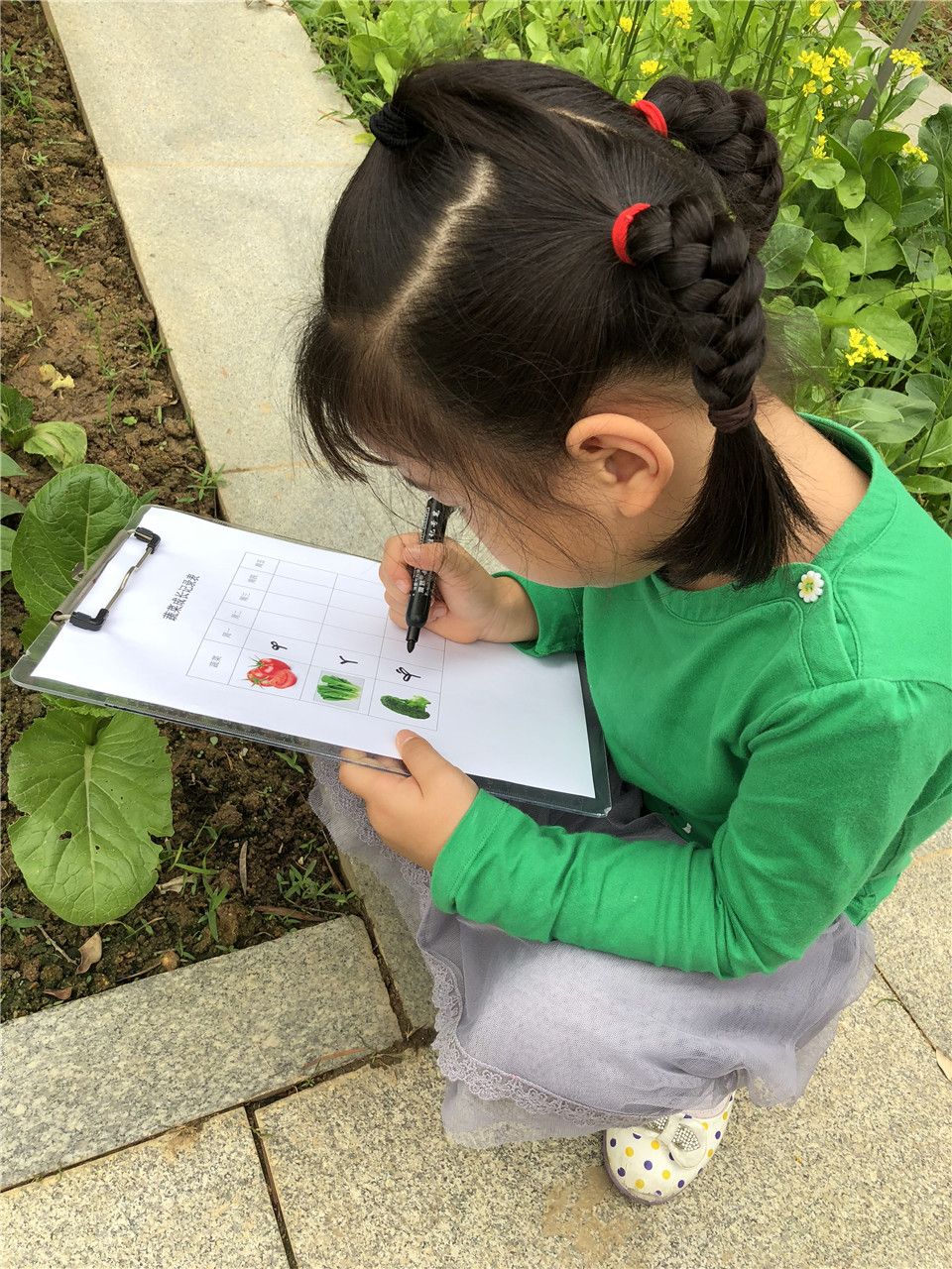 老师还教我们一个新本领,学习观察记录小菜苗的成长,用表格记录下小菜苗们的成长过程,小朋友可认真了!