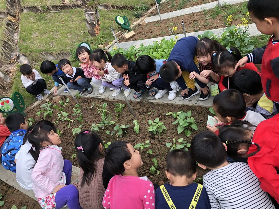 在大家的共同努力下,小菜苗们终于找到了新家啦!小朋友看着大家一起共同的劳动成果,高兴极了!
