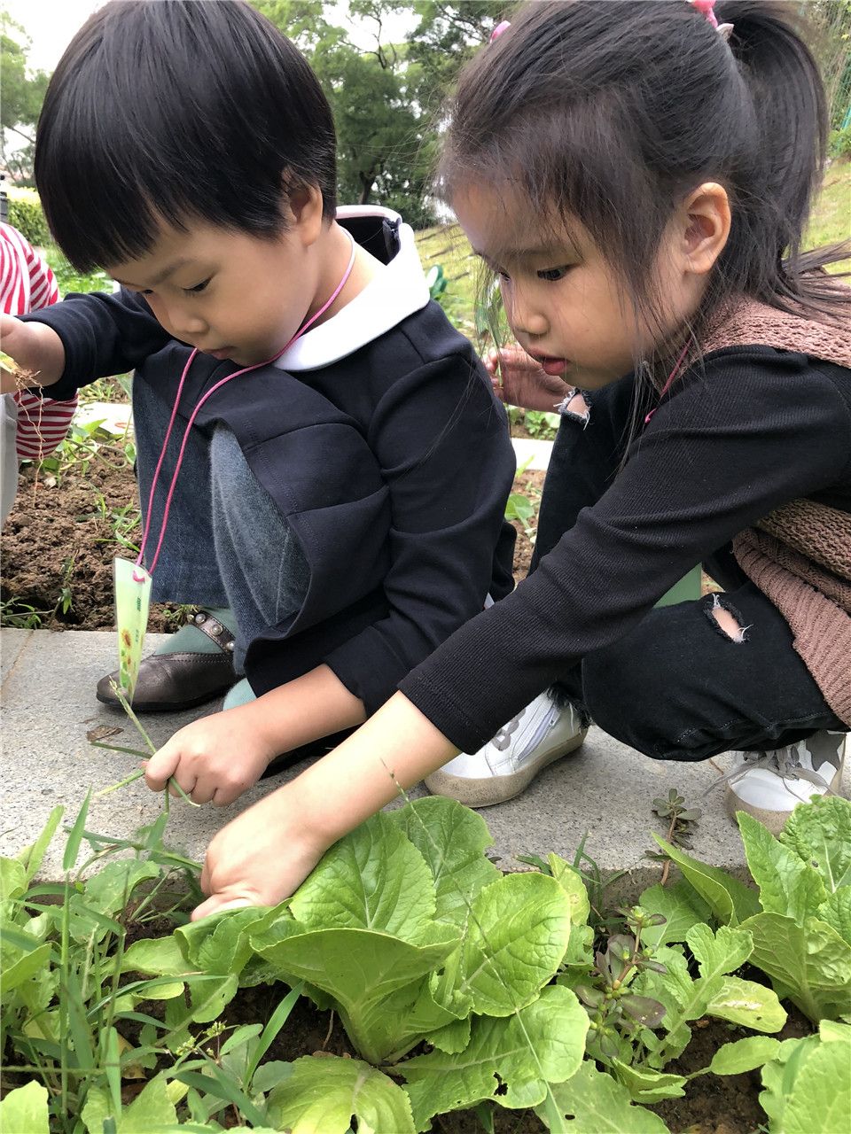 有了小班的种植经验,这学期小朋友动作熟练多了。大家先一起协商,分工分组,小农夫们在老师的指导下开始动手种菜啦!