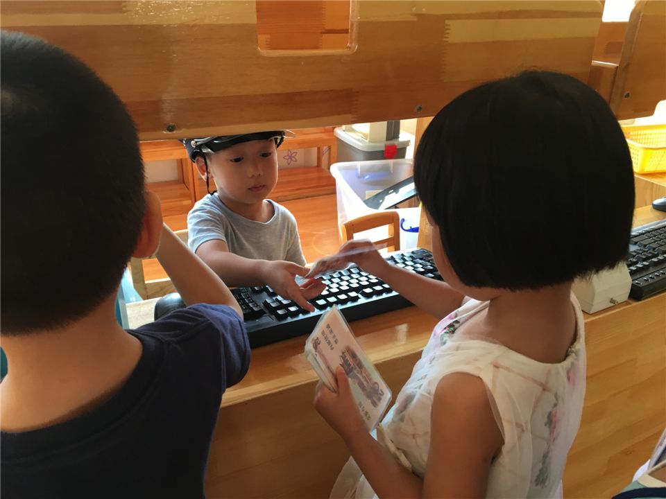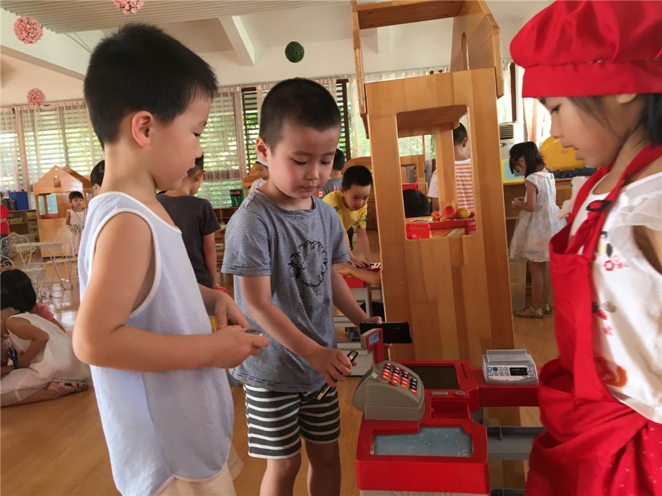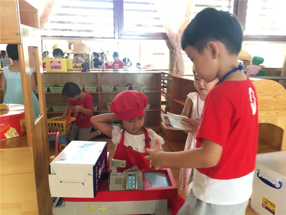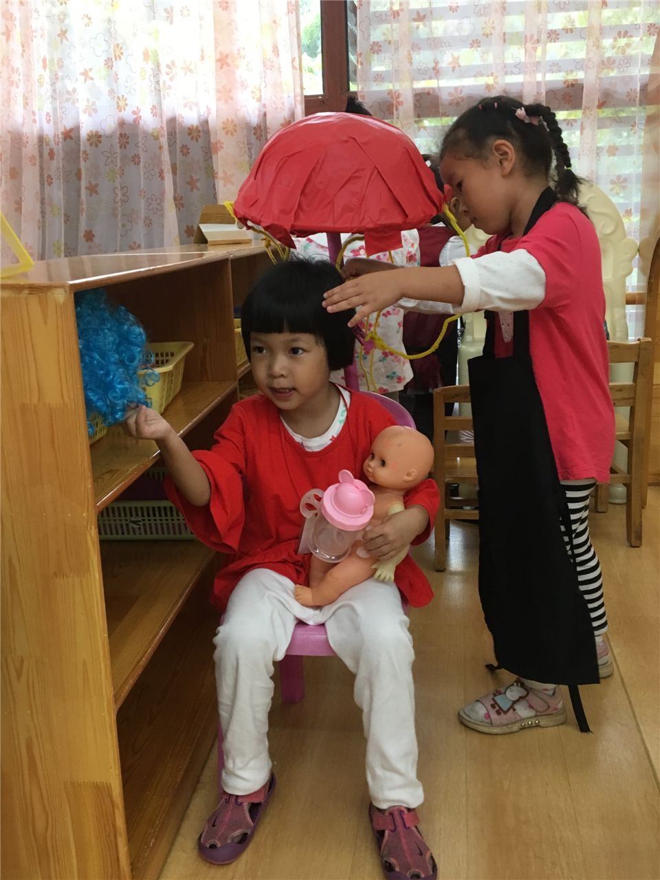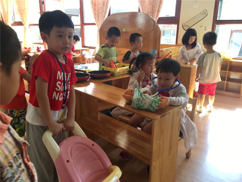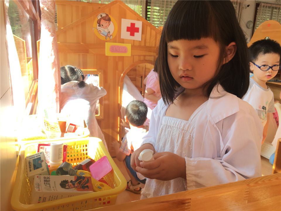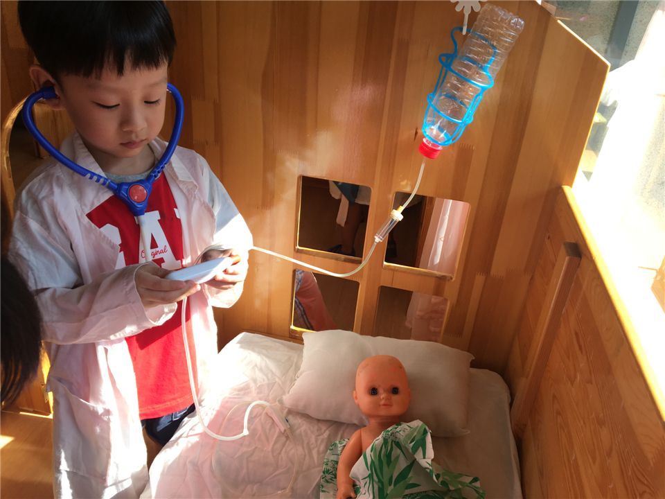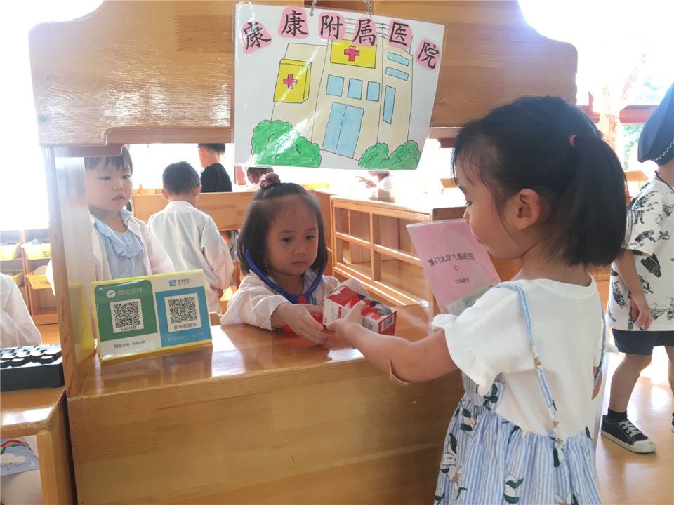“爸爸,我带宝宝出门看病啦,回来会顺便带点菜,你把家里收拾干净哦!”咦,是谁在幼儿园里过家家?原来是中七班的小朋友们在“南强小镇”进行角色游戏呢!