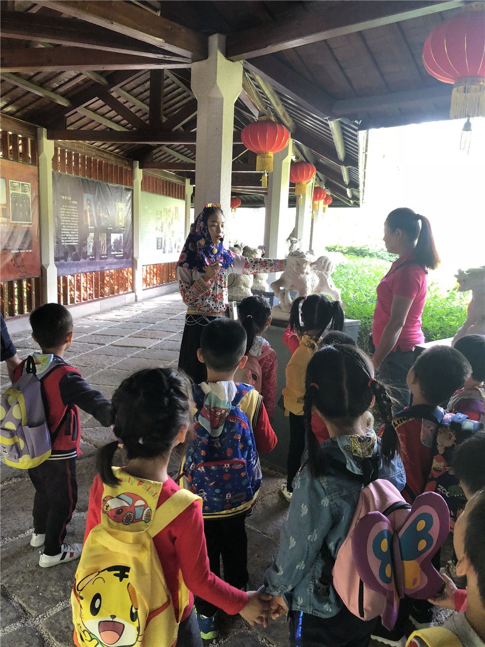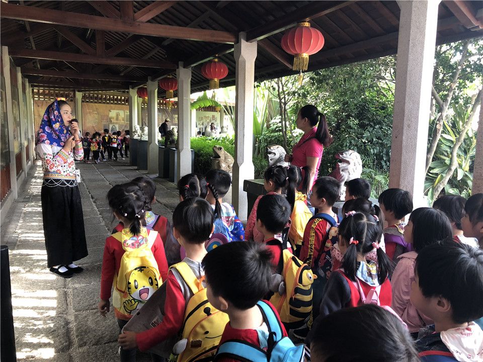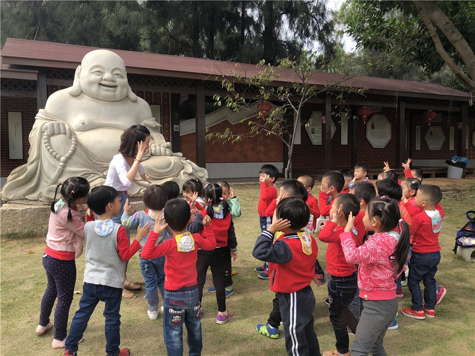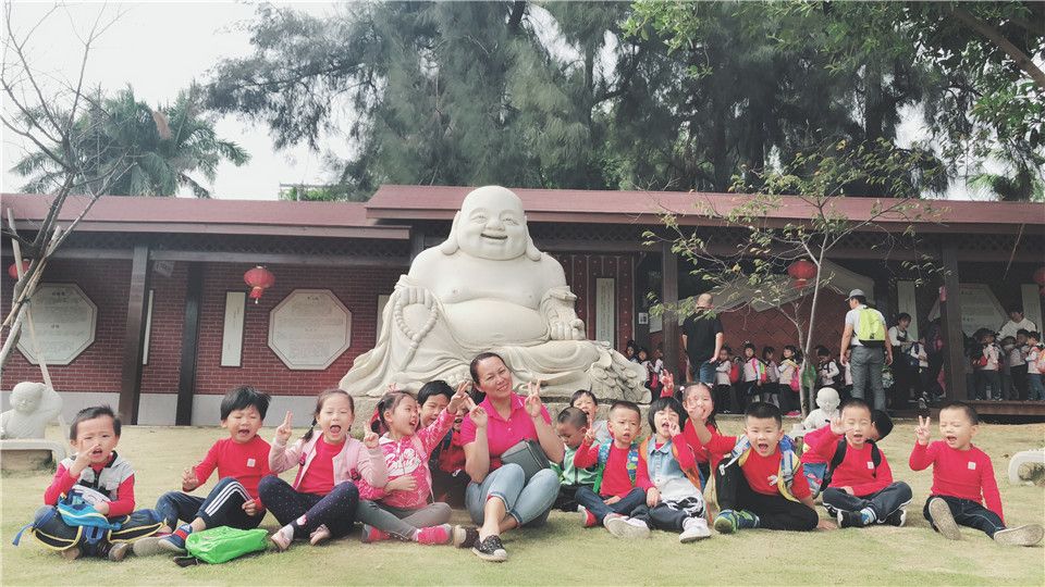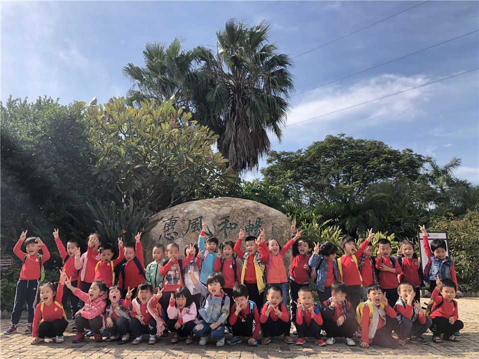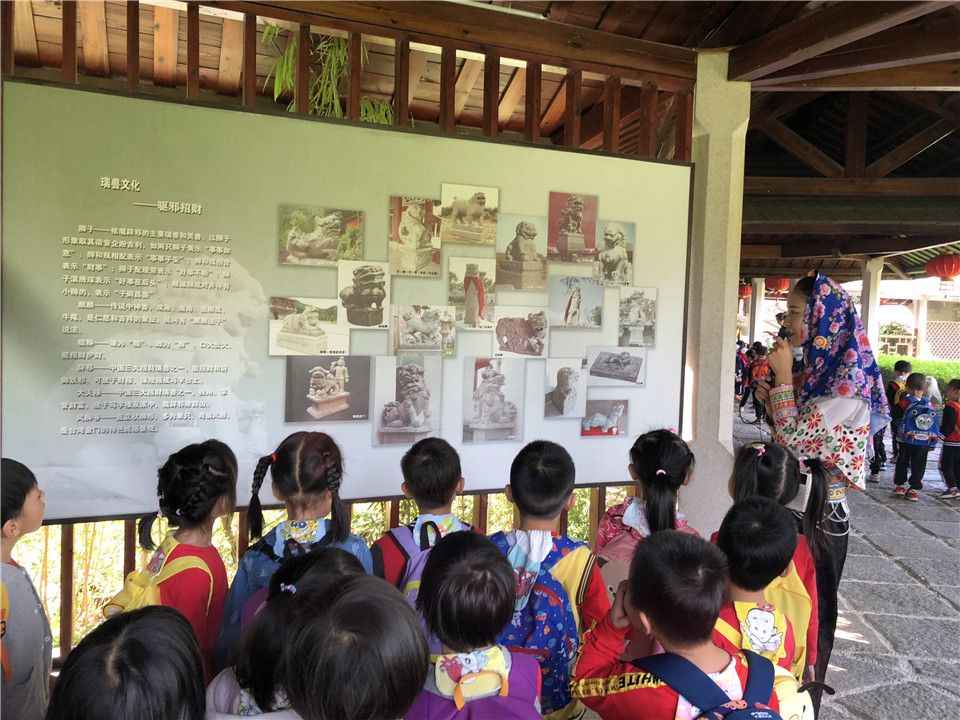 一路上的欢声笑语下,很快到达了目的地——惠和石文化园,孩子们开心地合了张影,排好小队伍跟着我们的漂亮姐姐开启了知识之旅,在姐姐的一一介绍下,宝贝们听得津津有味呢!