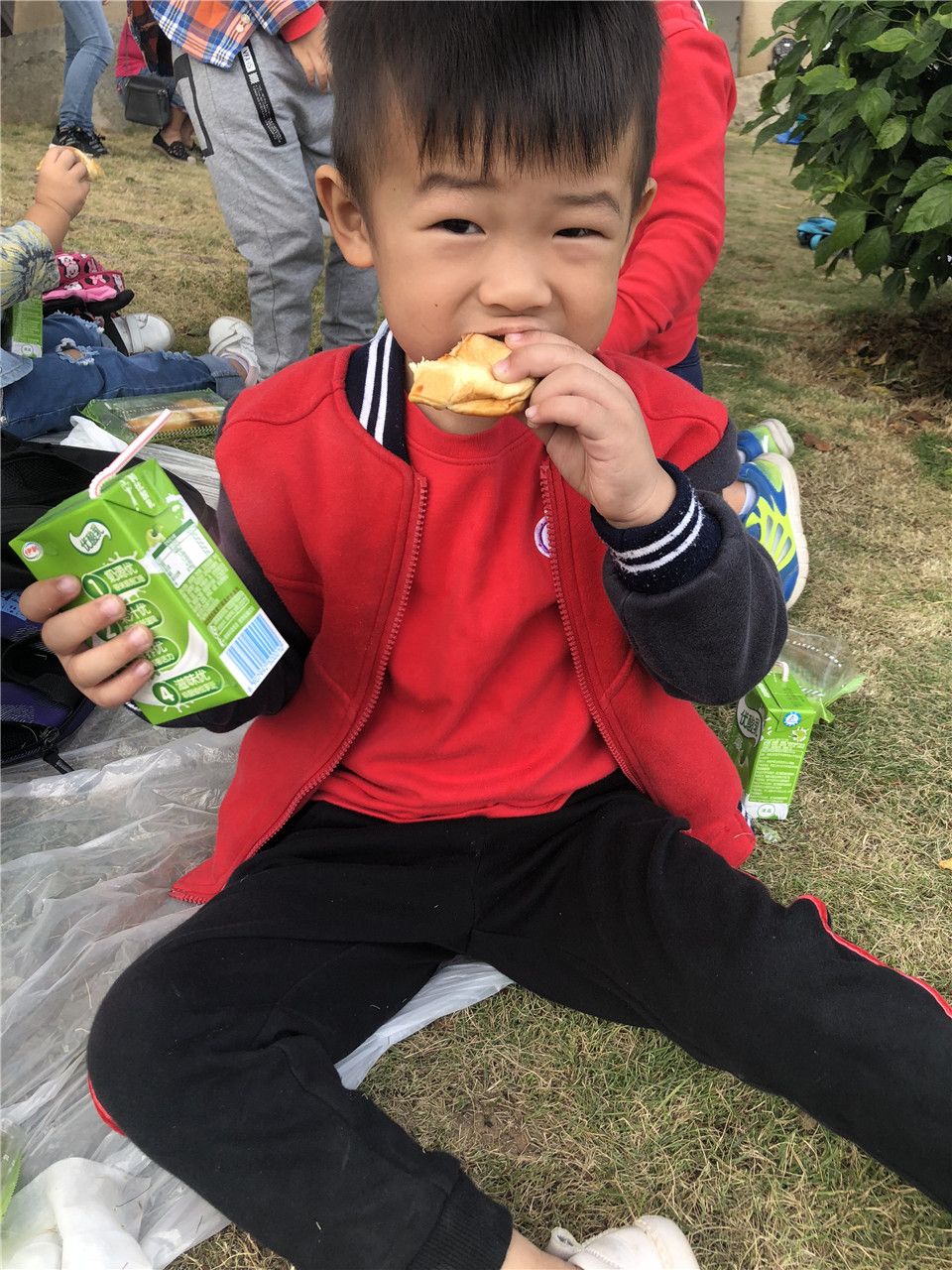 随之而来的就是宝贝们的吃货快乐时光,在阳光和阵阵微风的沐浴下,宝贝们在草地上开心地吃起了点心,脸上露出了甜甜的微笑。大家还跟着老师玩起了有趣的游戏……