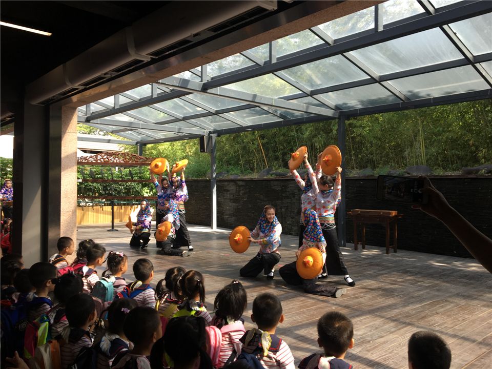 石雕游览结束后,听说今天有个演出哦,我们排好队就座来准备进行观看。