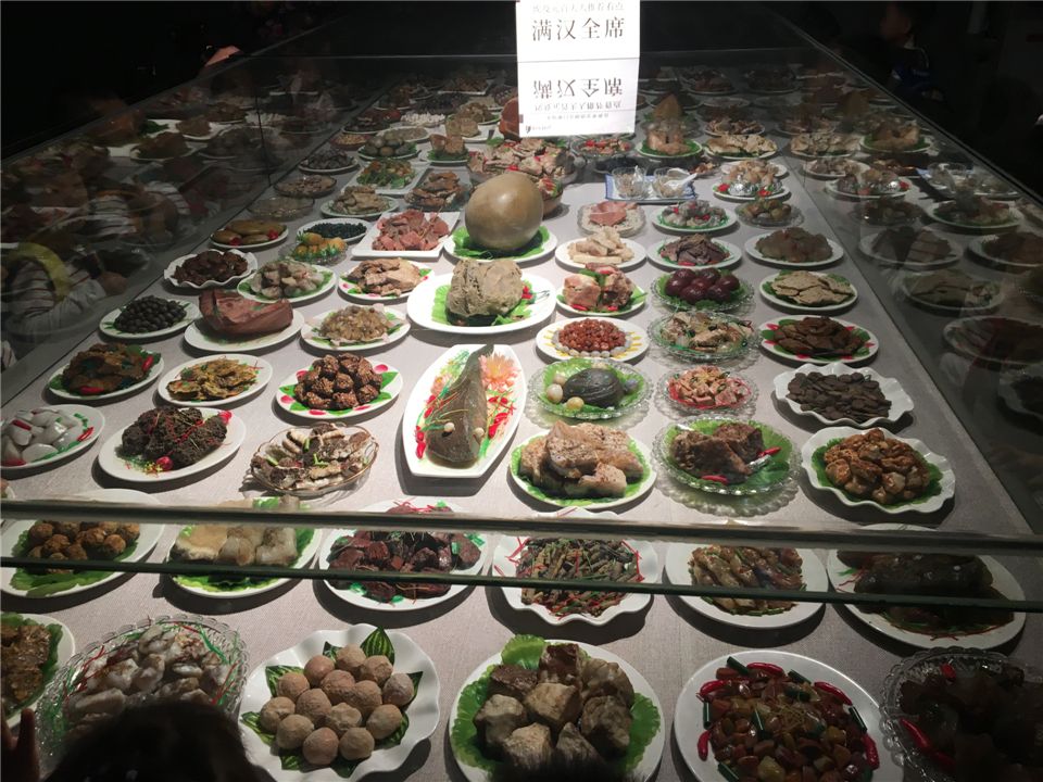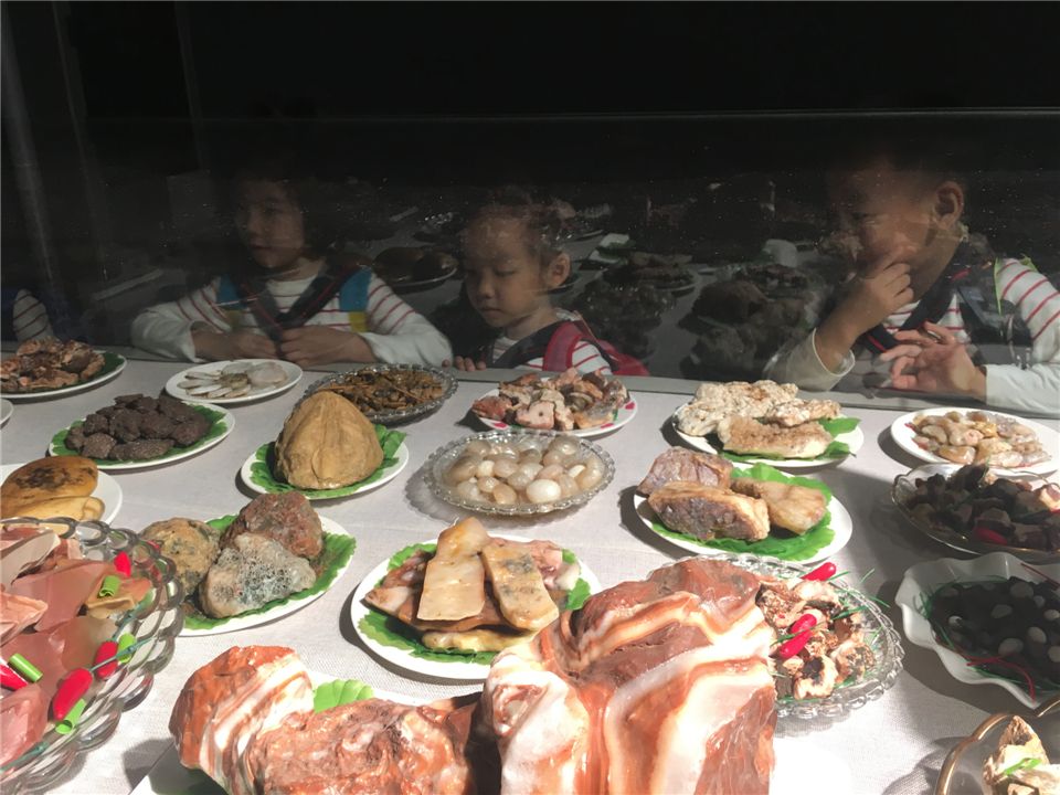 接着,我们参观了用石头做的满汉全席。哇!跟真的一模一样,看得我们垂涎欲滴啊!真的好想吃哦!艺术真是太伟大了!