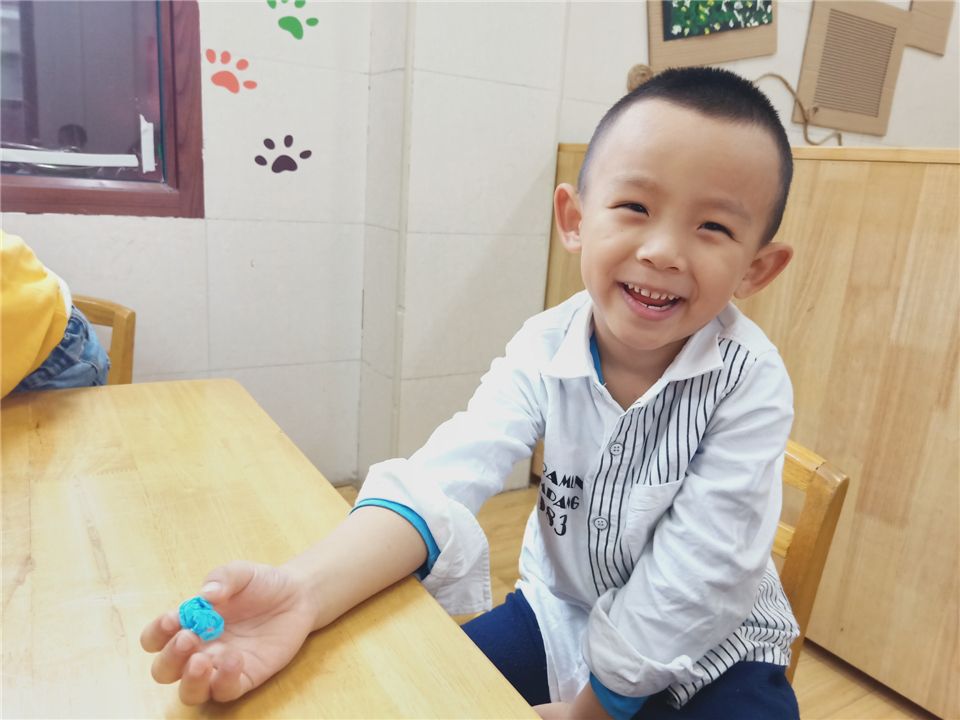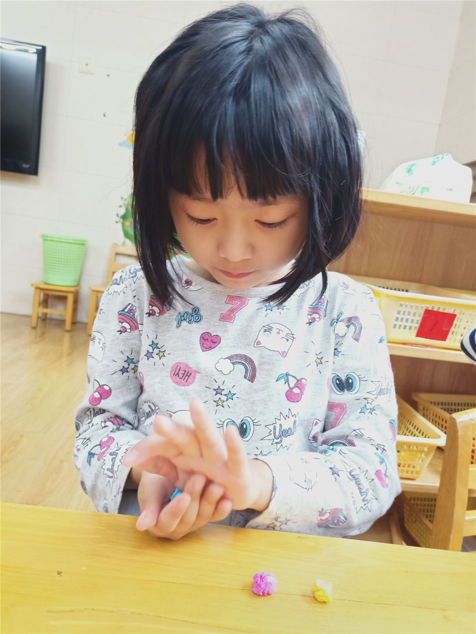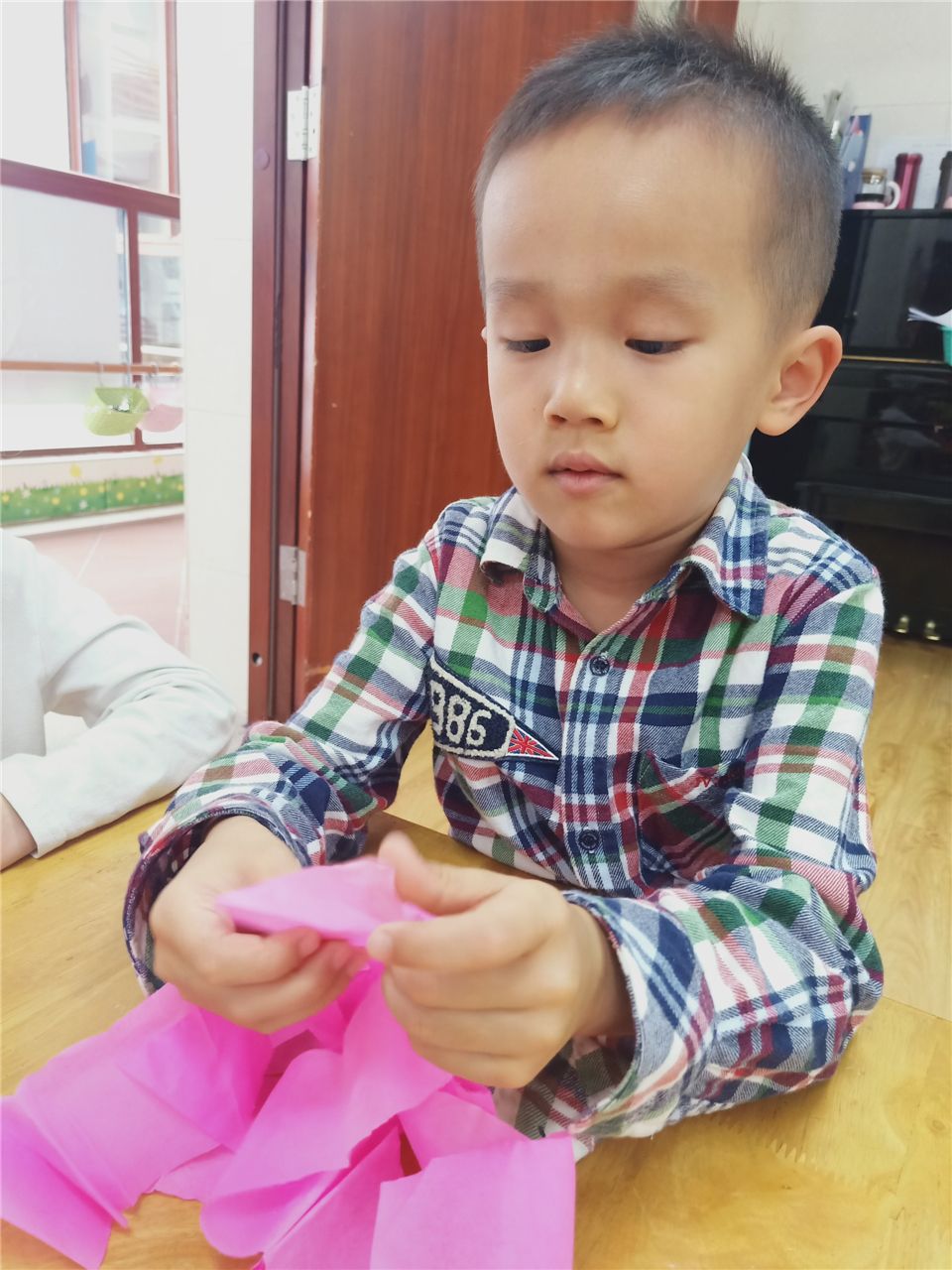 两只小手团一团,皱纹纸变成了“小汤圆”。