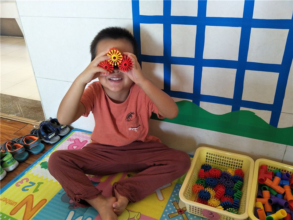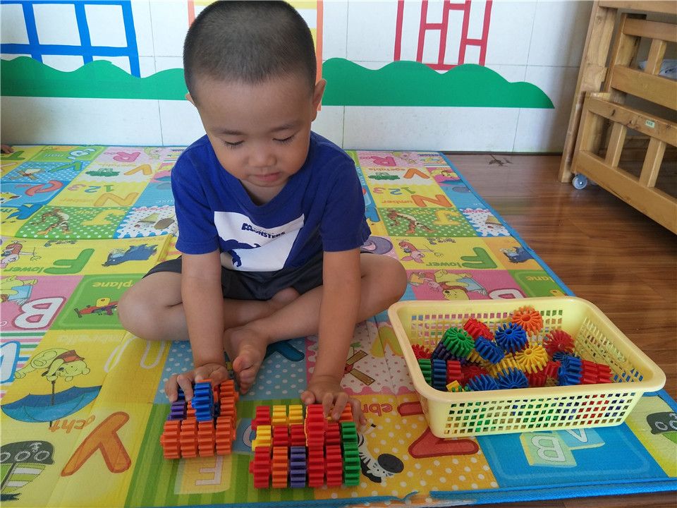 周:“这个积木这么多角,怎么才能把它们拼到一起立起来呢?”