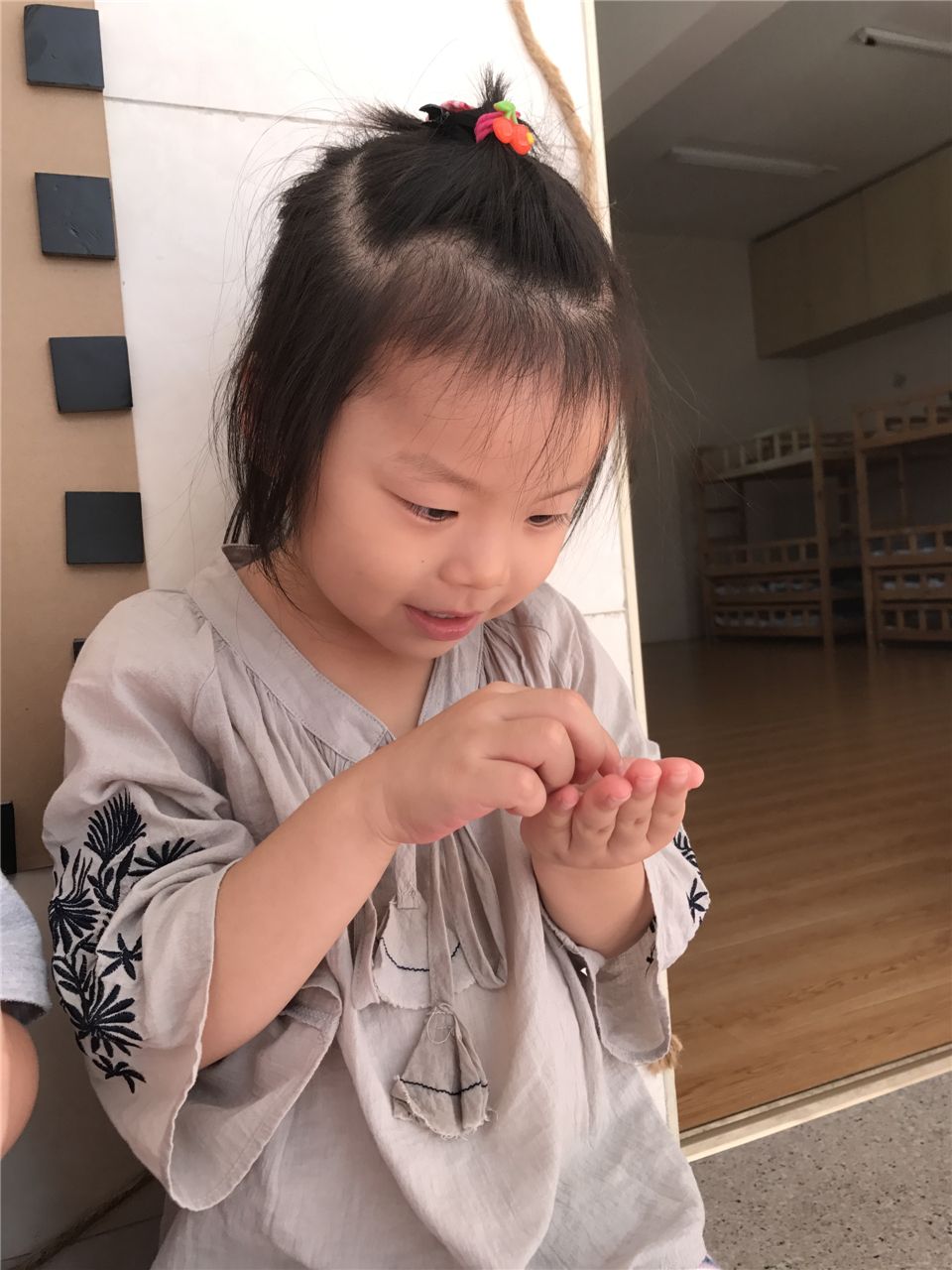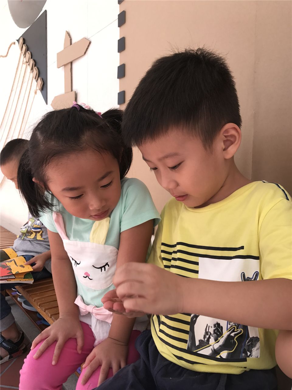 “咦,好像虫子啊。”“哈哈,这是死掉的小草吧?”