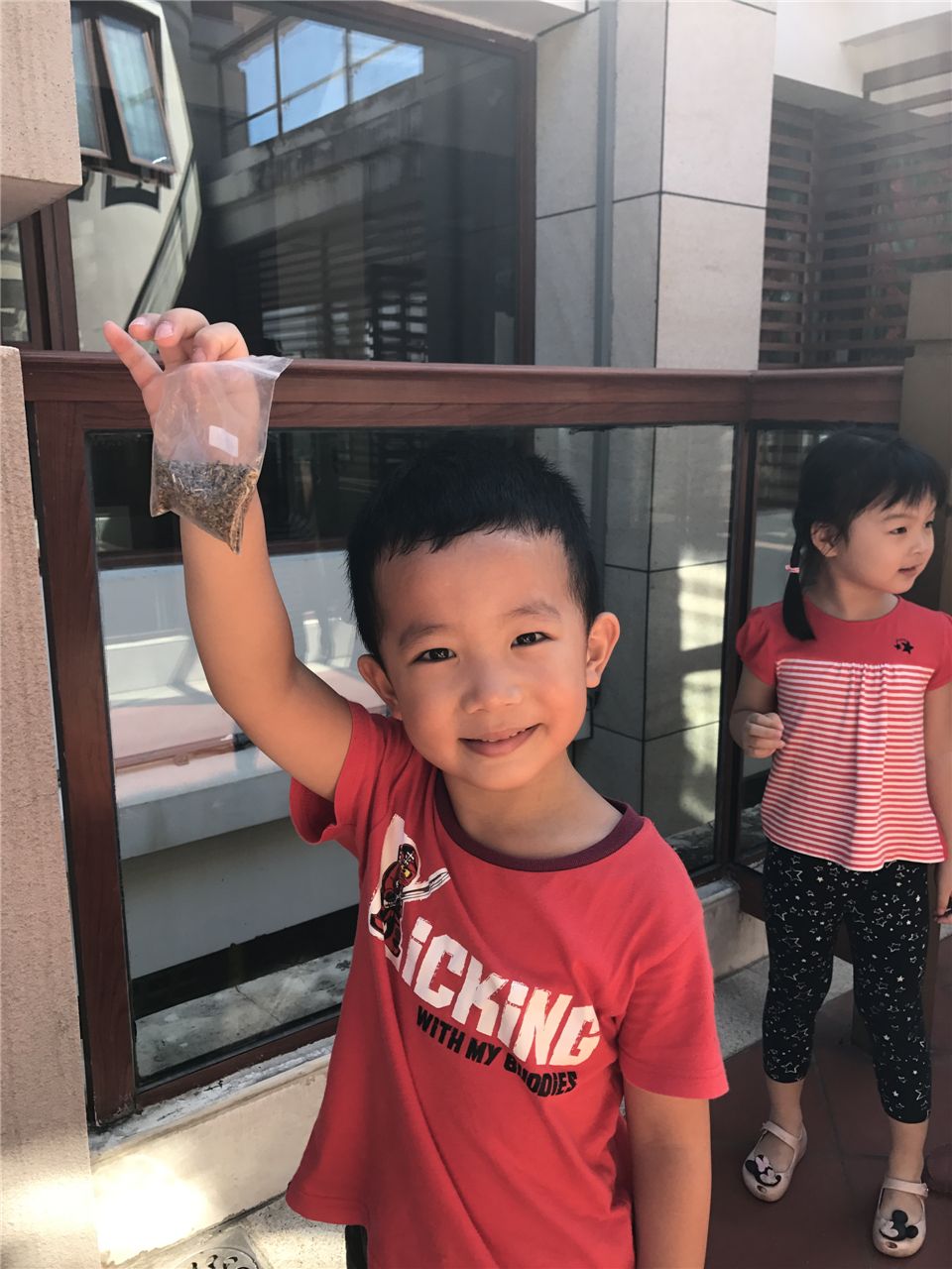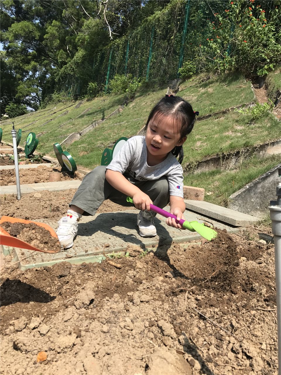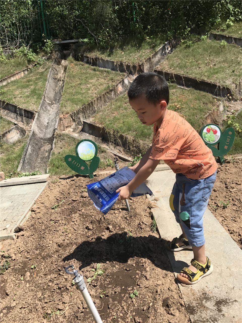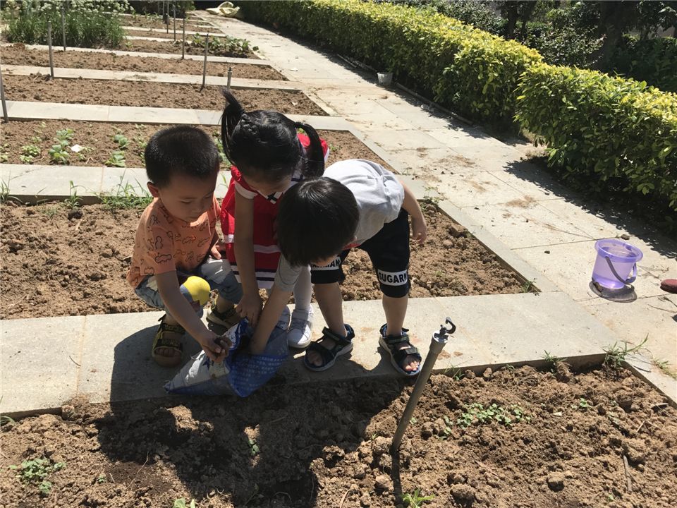 经过小班两次的种植经验,中二班的小朋友对种植的兴趣真的是越发浓厚,这不,大家都自己带种子来了。当老师提出让果果奶奶继续来帮忙的时候,小朋友一口回绝了,都说自己长大,可以自己种菜了。这不,你看看,小朋友们带上种子和购买回来的肥料,扛上铲子出发种菜咯。