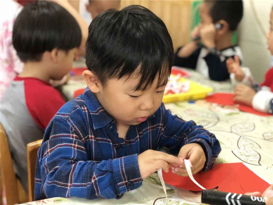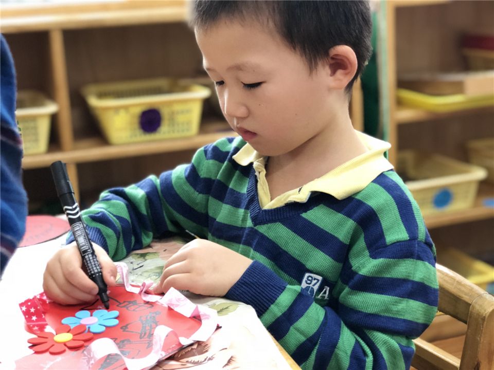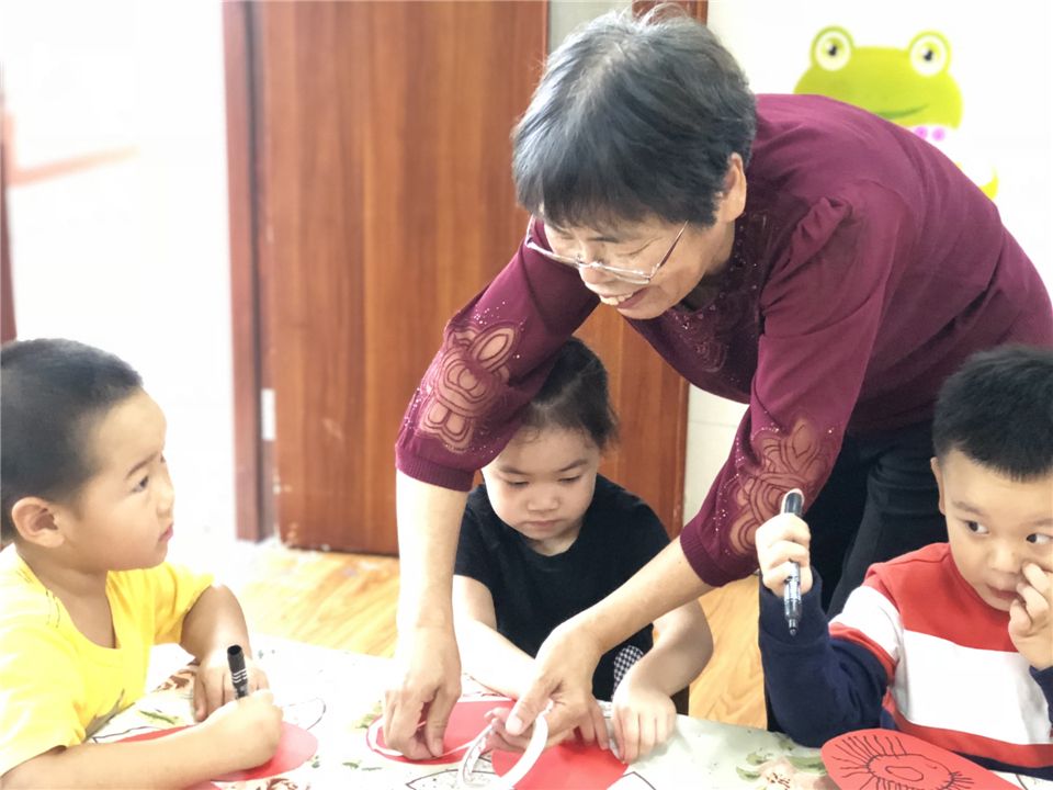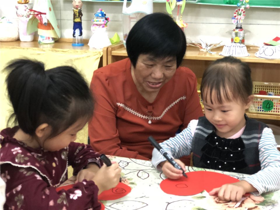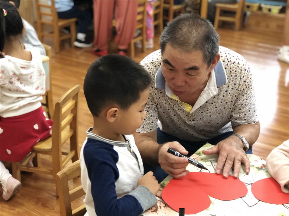 爷爷奶奶也帮助宝贝们一起制作爱心贺卡。