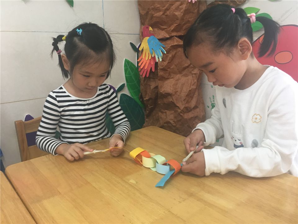 瞧,我们一人连接一头,小手真巧,配合的真好!