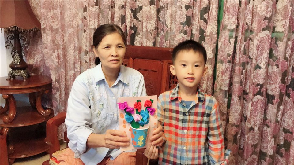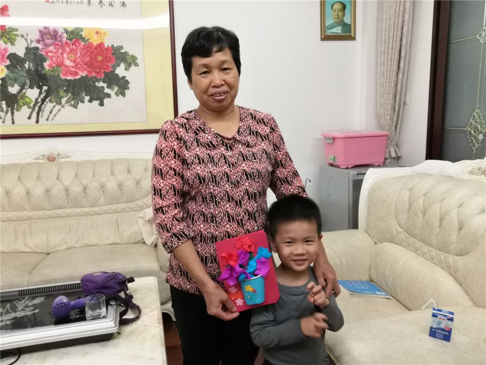 镜头四:给爷爷奶奶送康乃馨贺卡