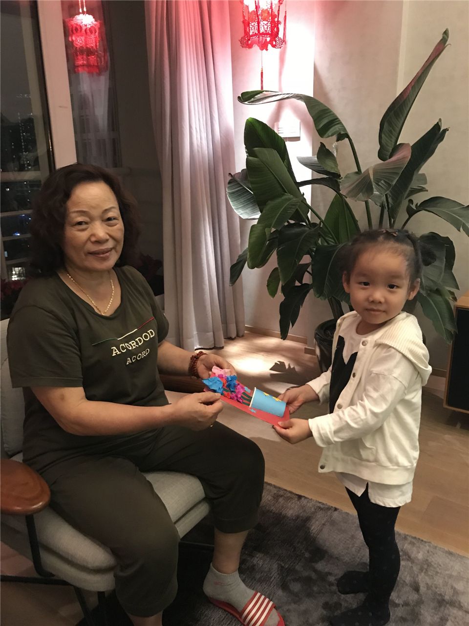 太好了,我们的作品完成了,明天就可以送给爷爷奶奶了。