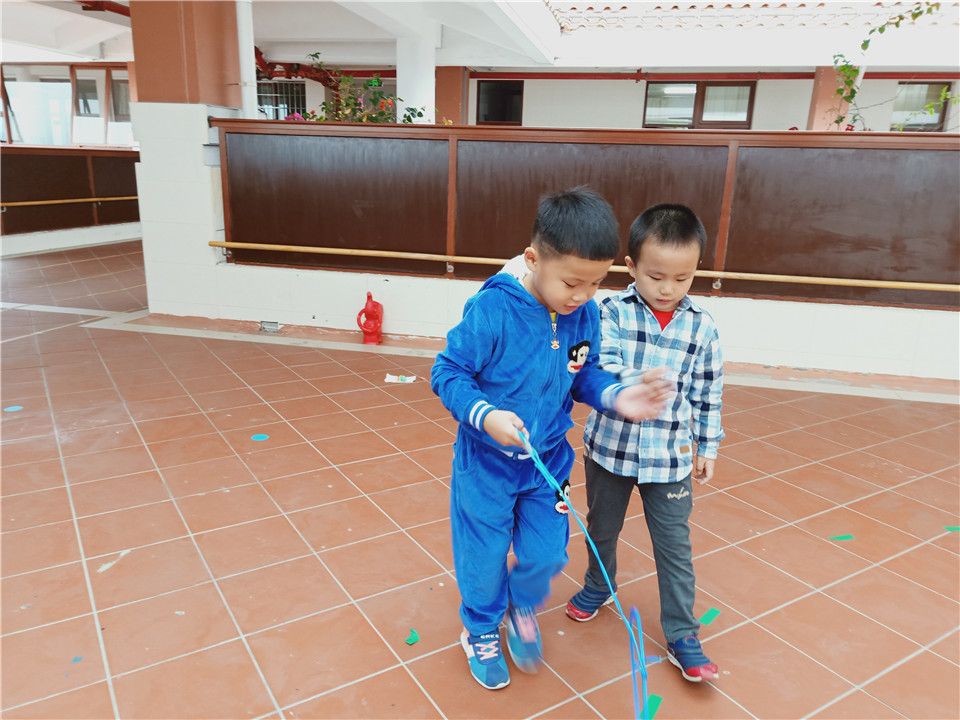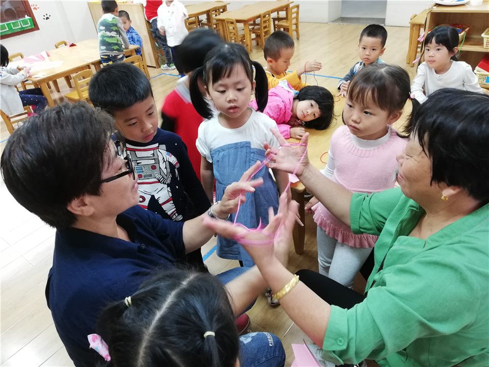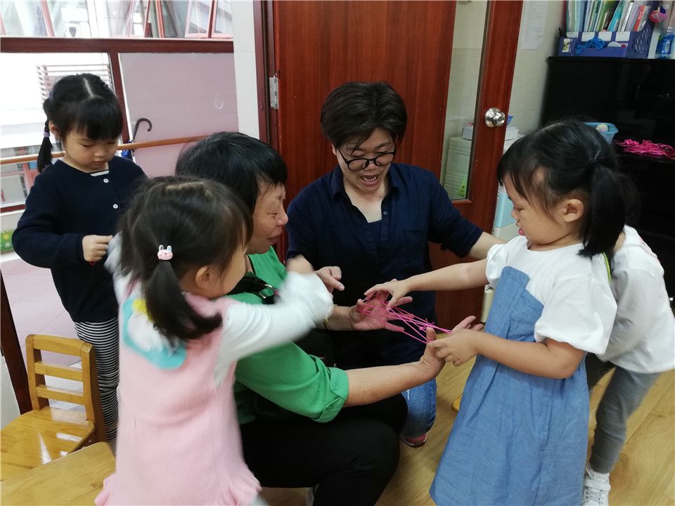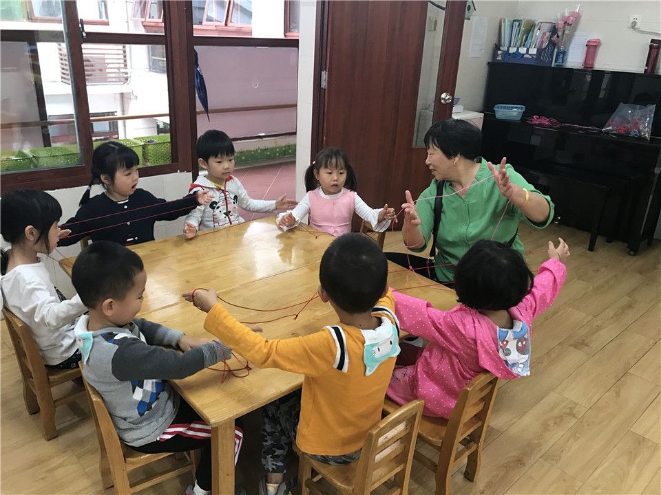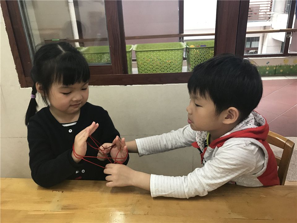 好朋友相互传授着翻绳的经验,相互欣赏着翻出的"作品",成功的喜悦促让幼儿获得更多的自信。