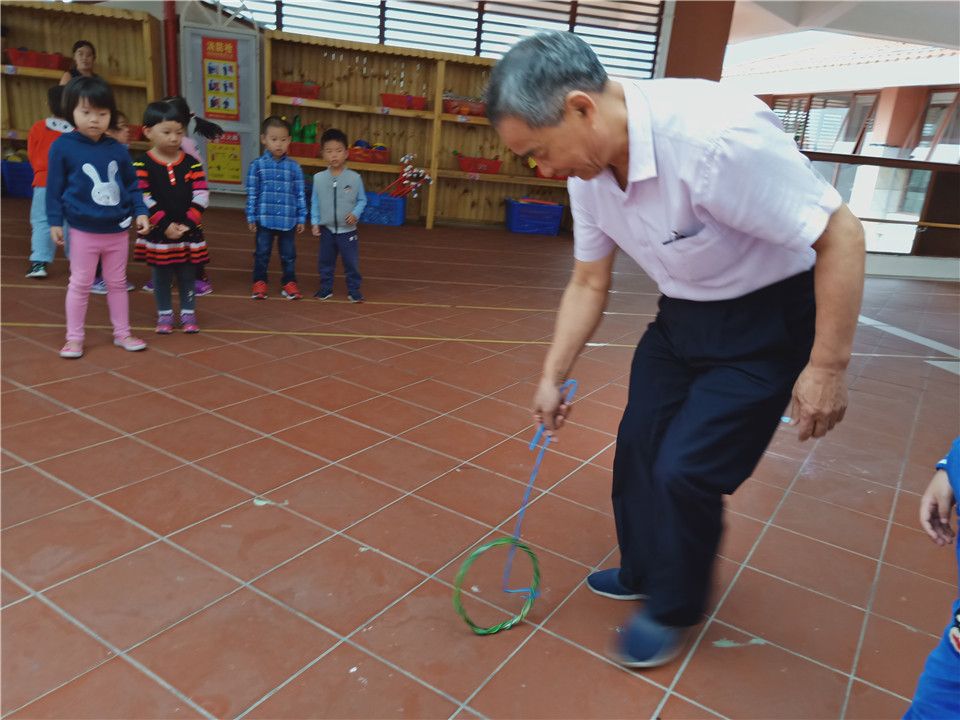 爷爷奶奶们分别向小朋友演示了他们小时候玩过的游戏,瞧,游戏中爷爷奶奶们儿时的那股顽皮劲儿全展现出来了,仿佛又回到了童年时代!