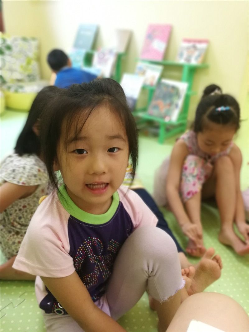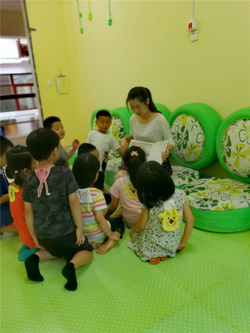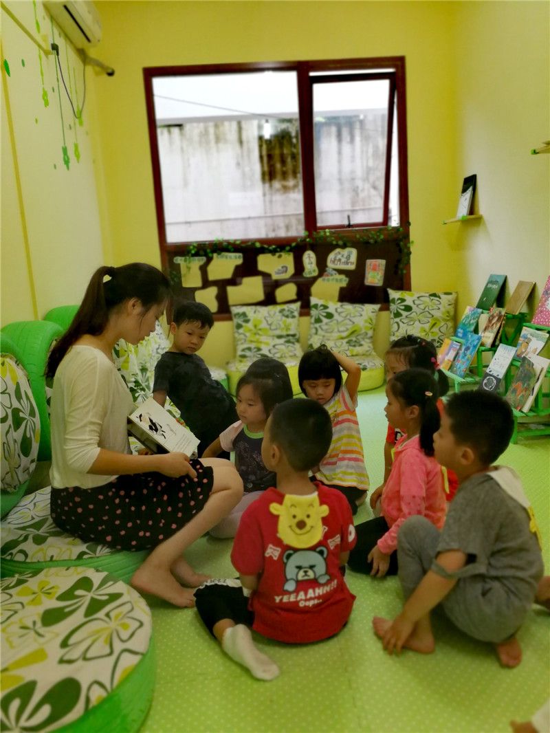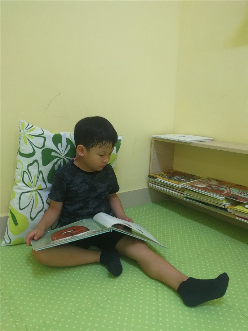 瞧,一个个稚嫩而又认真的小脸庞出现在了这个安静的地方,他们手里捧着书本,仔细又耐心地翻看着每一页精彩而又有趣的画面,还时不时和身边地小伙伴交流着,讲述着……在这里没有孩子拿到书本后,随便翻了翻,就丢到一旁,因为这里有太多有趣的绘本供他们选择了。