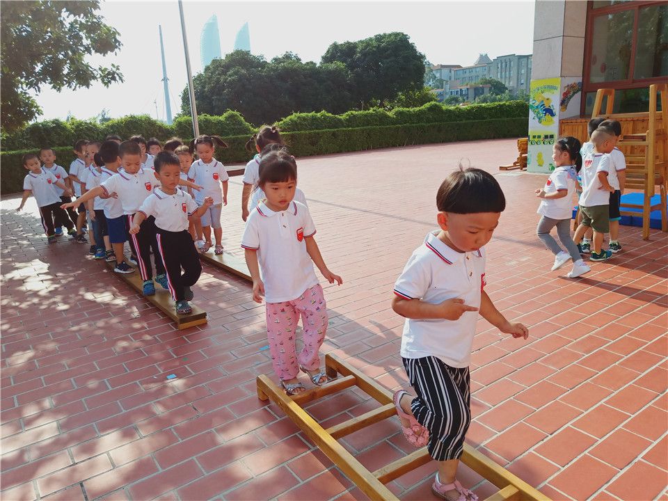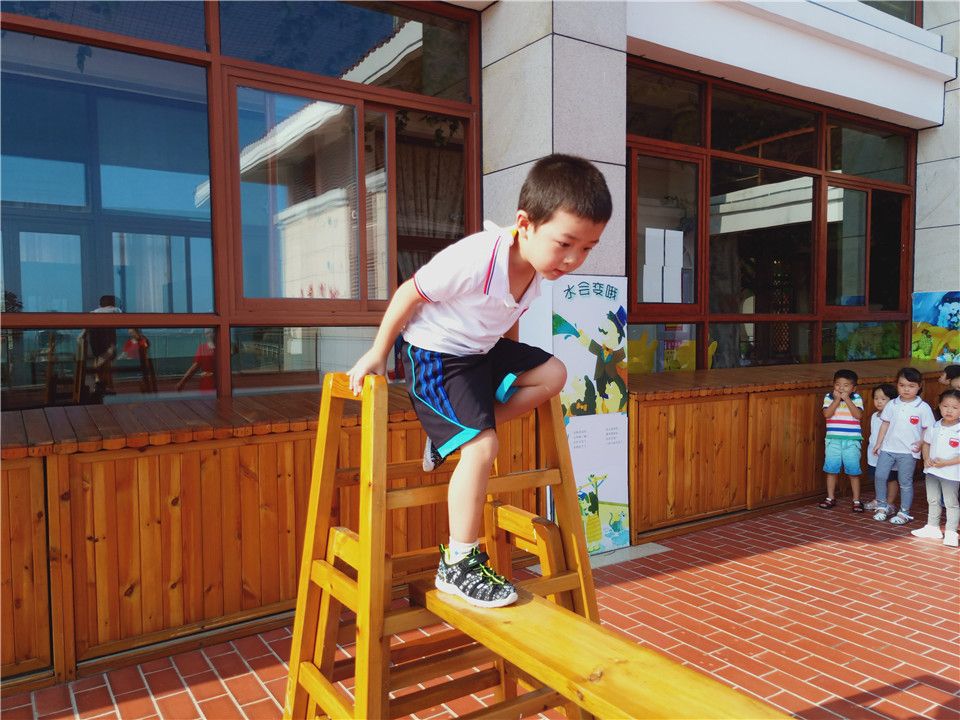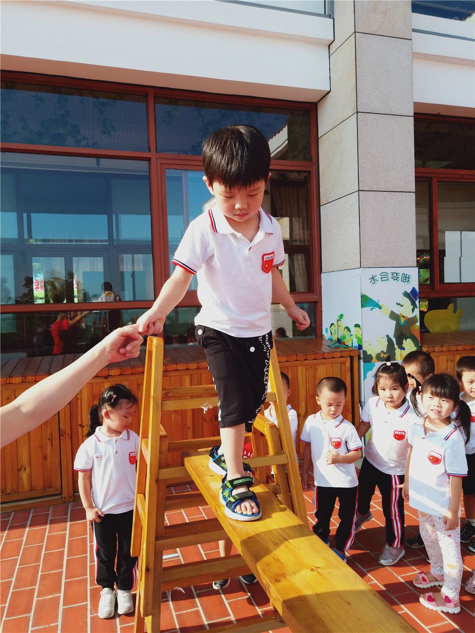 户外活动中,似曾相识却不曾挑战过的木头材料,让小朋友心中充满了兴奋和期待。虽然,这是第一次挑战,但是他们在大胆尝试中体验到了成功的乐趣。“我体验,我能行,我很勇敢!”加油加油哦!