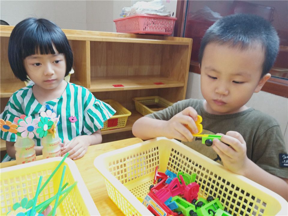 上了中班,小朋友们要迎接新的改变、新的挑战。科学区的趣味七巧板、数学区的按数插花、操作区的仙人掌球……焕然一新的玩具材料,等待着小朋友们动手探索奥秘呢!