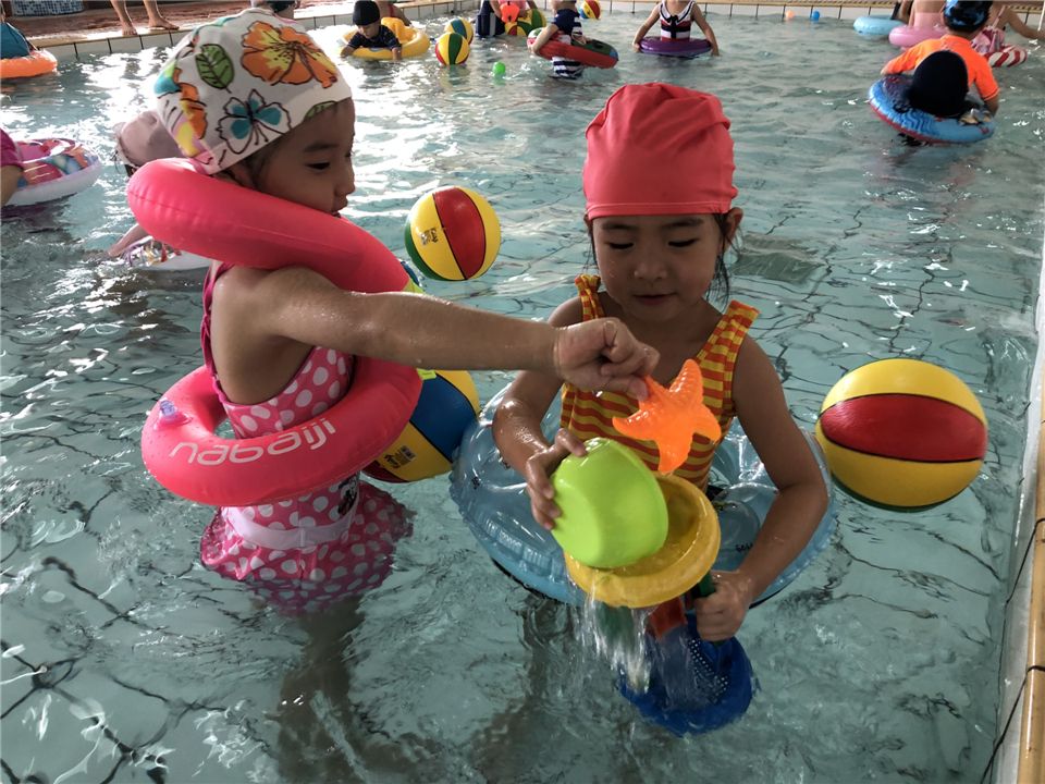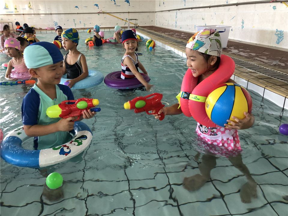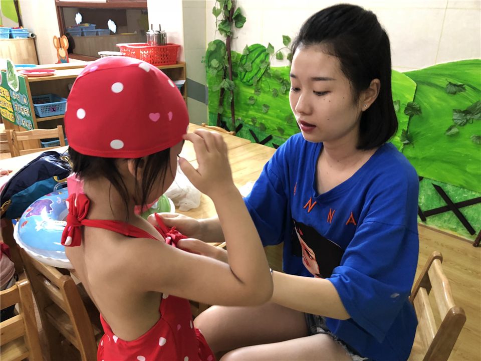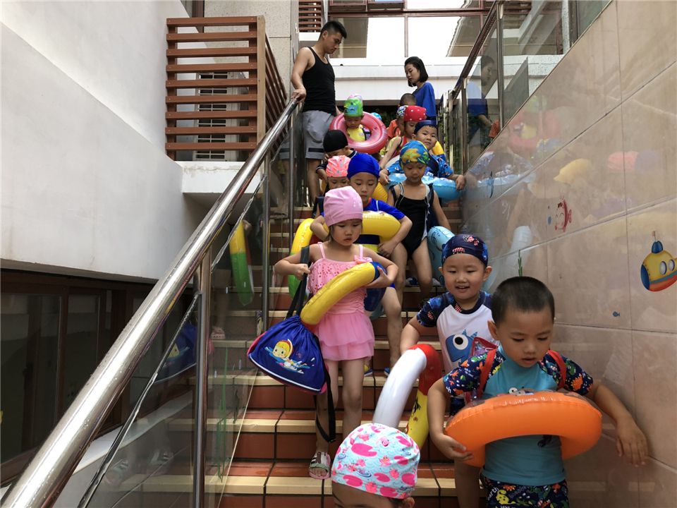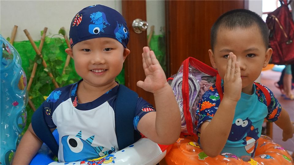 “老师,咱们什么时候可以开展戏水活动呀,好久好久没参加啦,我可喜欢了!”“老师,我们现在是中班小朋友了,还是在原来的地方玩水吗?”“老师,咱们早点下去戏水馆吧,我好想多玩一会呀!”……孩子们七嘴八舌地问起,期待着本学期的第一次戏水活动的到来!在老师和家长们的帮助下,孩子们迅速地穿戴好戏水衣服,带好了戏水用具!