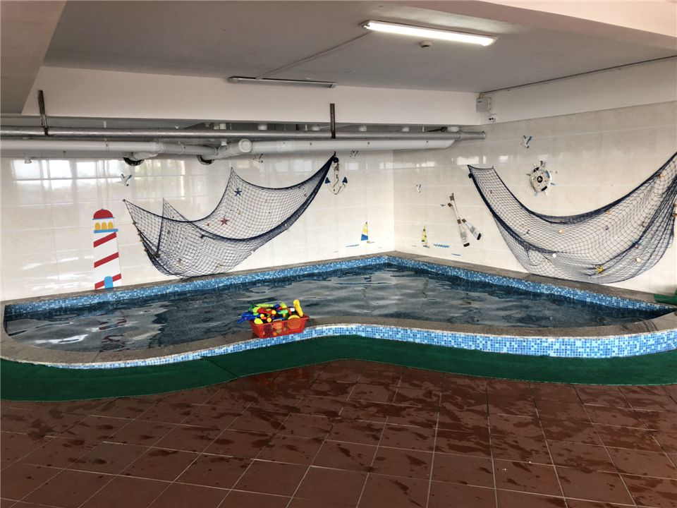 很快大家来到了戏水馆,老师告诉我们这学期我们长大了,升中班了,戏水池从小池换到大池来了。呀!大池好大,我们都没进去玩过,快快让我们玩吧!