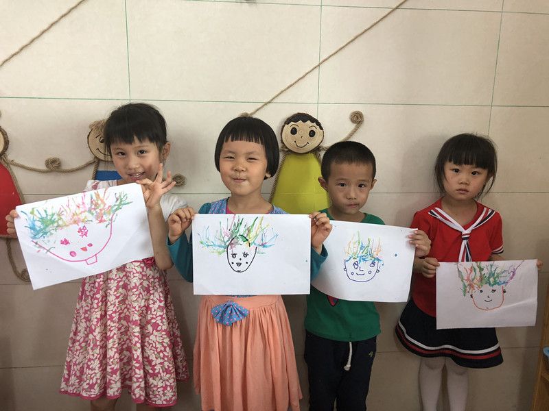 用吸管来画肖像,可以比你想象的更有趣!先用水笔画一张脸,这个我们中七班的小朋友们最在行了,看,几笔勾勒再添上五官一个个调皮的“小朋友”出现在纸上。然后用吸管蘸着五颜六色的颜料在头上,朝各个方向吹起来!画纸上的人立刻长满了触电一般的五彩头发,别提多潇洒了。
