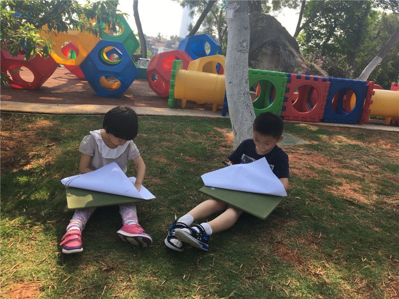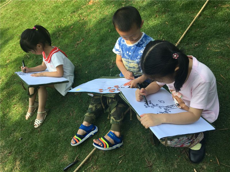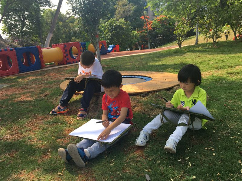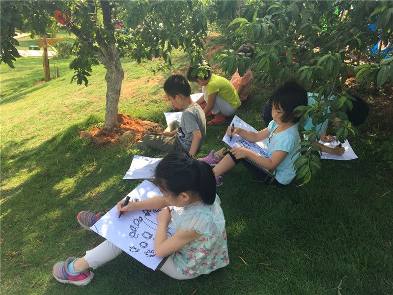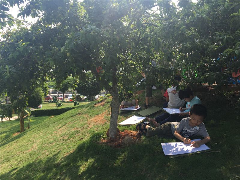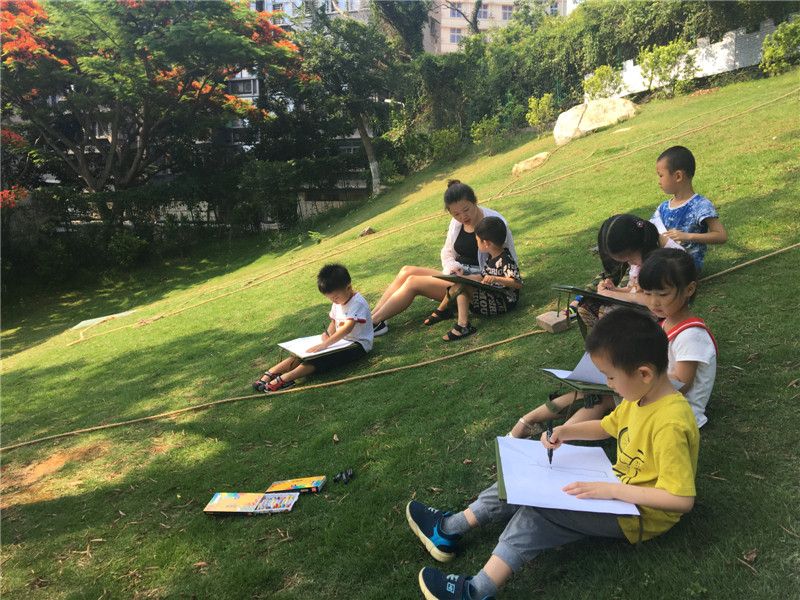 萌娃们还在山坡上快乐地写生,他们或凝神远眺,或专注勾画,或掩耳细语,或嬉笑喧闹……一切都是那么的美好。这个夏天最浪漫的事,就是和你一起坐在草地上看着凤凰花开,画着凤凰花开的美好。