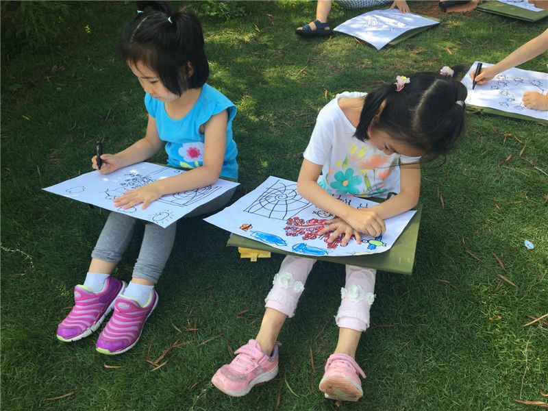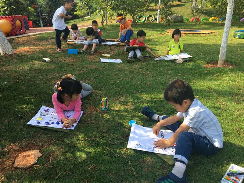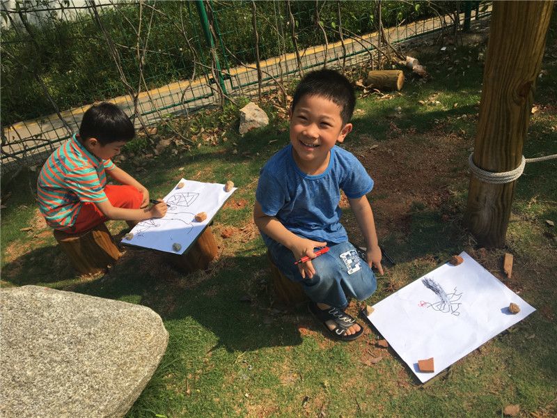 画着画着,萌娃们忍不住和小伙伴们讨论自己画了什么。天天说道:“我要把凤凰木边那个蜘蛛网的攀爬网画上去!”六六说:“我把树下画画的小朋友也画进画里”晨晨:“一次飞虫从我眼前飞过了,我把它也画下来!”……