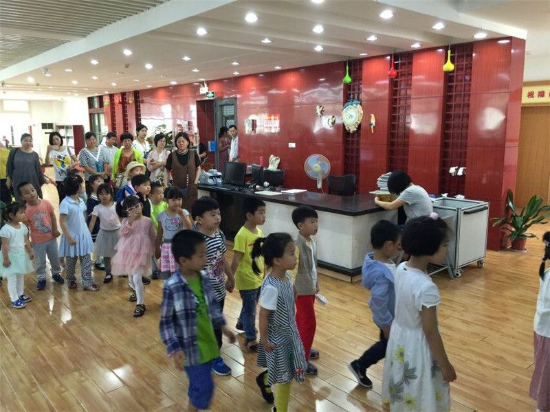 图书馆里的大姐姐热情的接待了我们,在她的带领下,小朋友们手牵手排着整齐的队伍和爸爸妈妈一起依次参观了功能各异的图书室。少儿图书馆共有六层,每层都有不同的特色:综合阅览室、明德英文图书馆、成年人阅览室、过刊室书馆……最让小朋友们兴奋的是这里有属于他们自己的图书室。