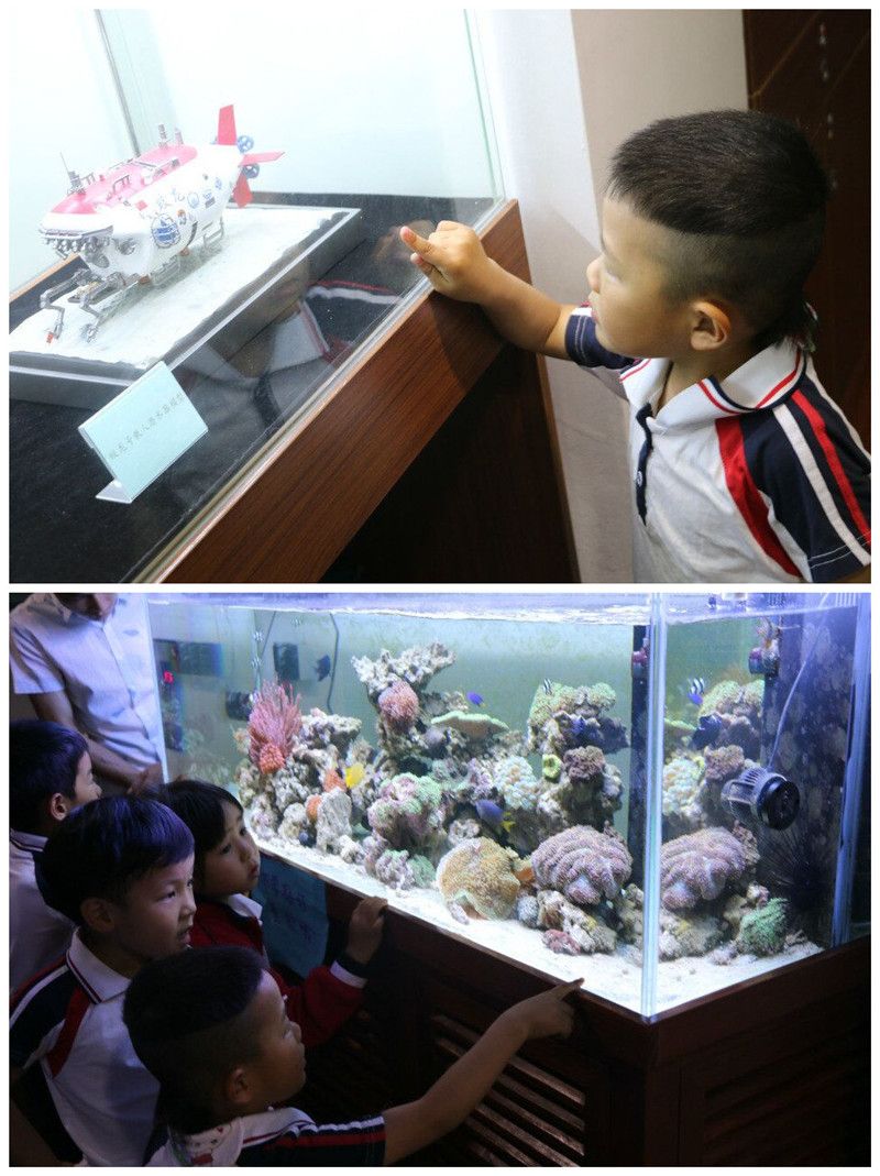 海洋馆里,可爱的孩子们看到了英武彪悍的大鲸鱼,憨态可掬的大海龟,千姿百态的珊瑚礁、海螺、海星、贝壳,上千种、数万尾形态各异、色彩艳丽的海洋生物实体标本、图片展示。孩子们看得眼花缭乱,流露出强烈的求知欲望,不时好奇地提出各种问题,疑惑,丰富着自己的海洋知识。