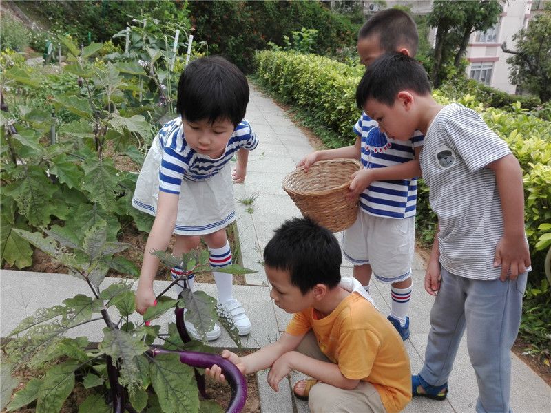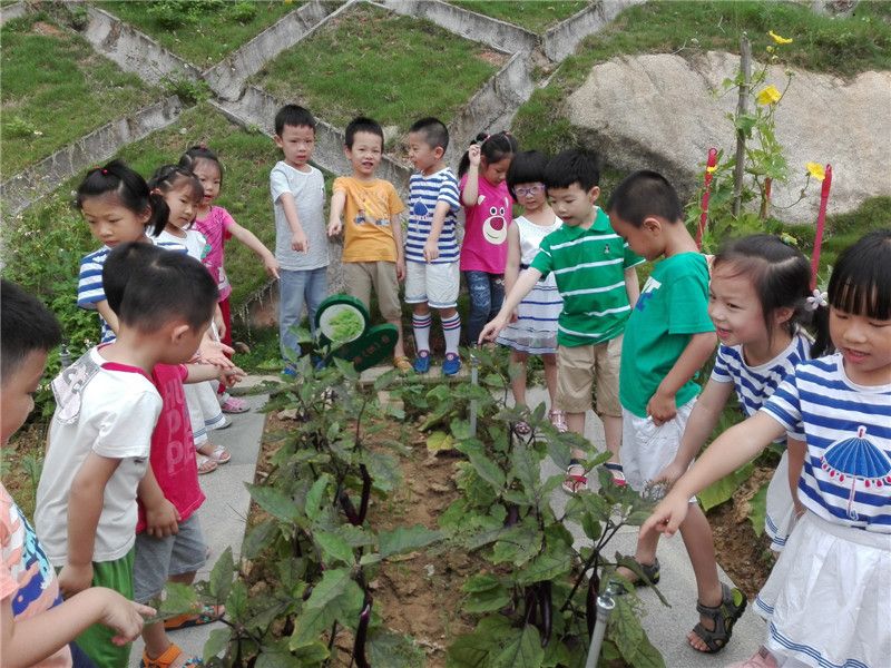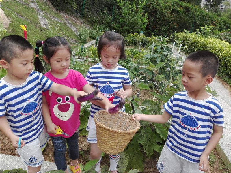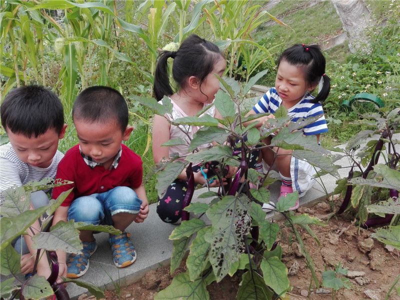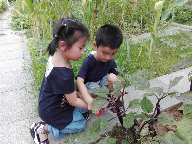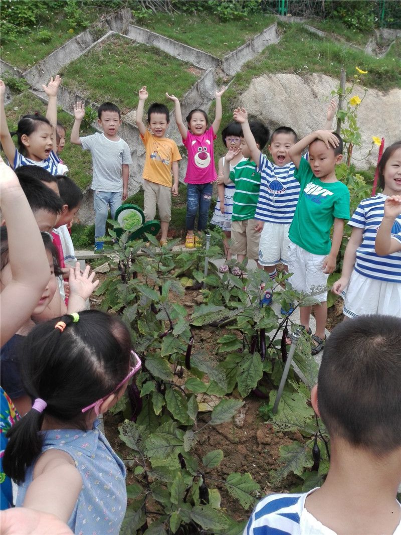 原来是中五班孩子们种的茄子成熟了,他们准备亲手来采摘茄子。