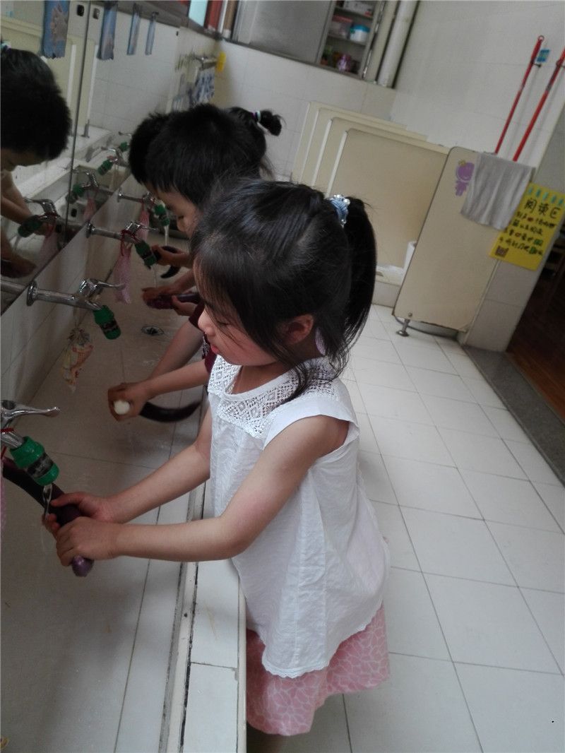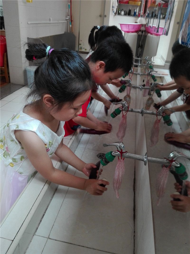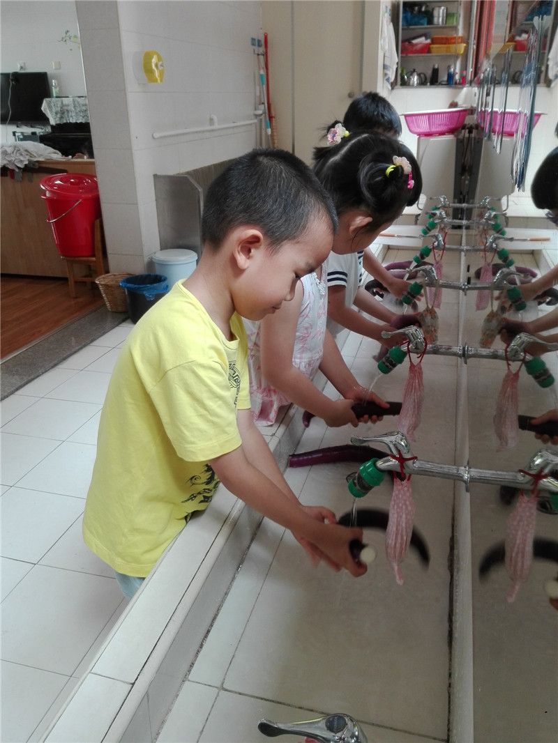 负责清洗的孩子终于要出手啦!只见他们有模有样地洗着,不放过茄子的任何一个部位,生怕洗不干净,那认真的小模样着实可爱!