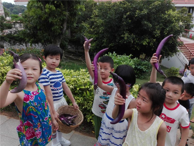 欢声笑语中,茄子已经装满了筐,孩子们看着满筐的茄子高兴得连小嘴巴都合不上了!