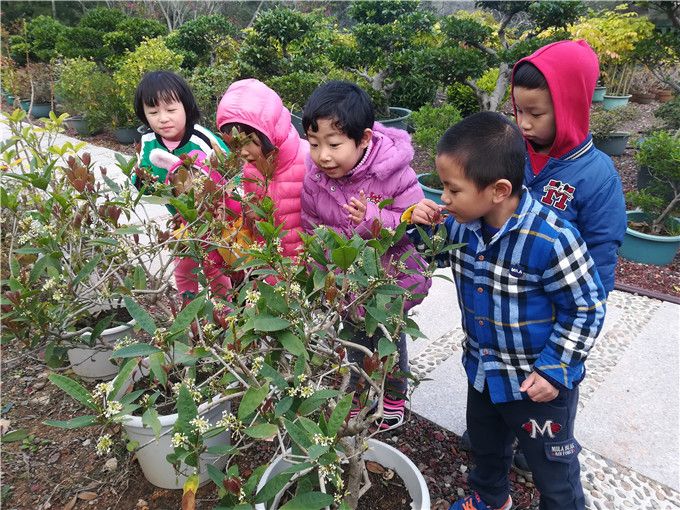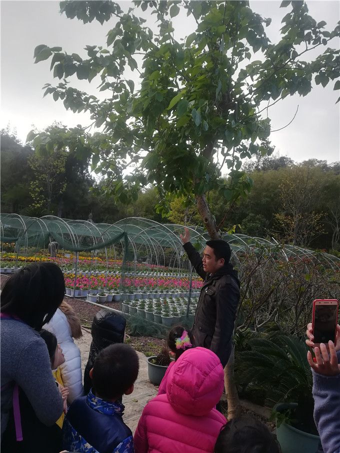 “这是含笑花,它有浓郁的香味,还有药用价值和美容功能呢。”崇杰爸爸给孩子们讲解着,孩子们一个个睁大眼睛、踮起脚尖,认真地聆听。