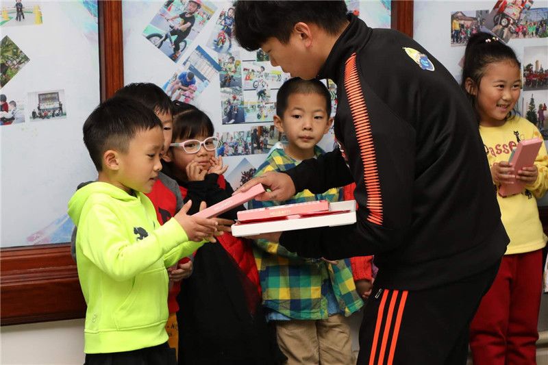 拍大合照咯!运动后宝贝们红扑扑的小脸像红苹果,大家举着礼物,笑得好开心。