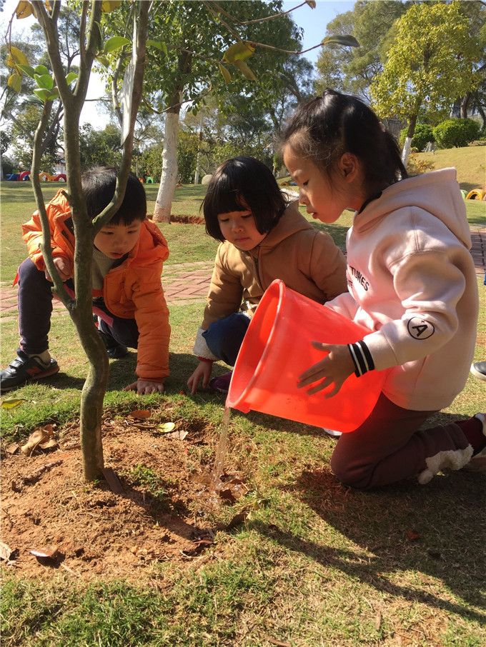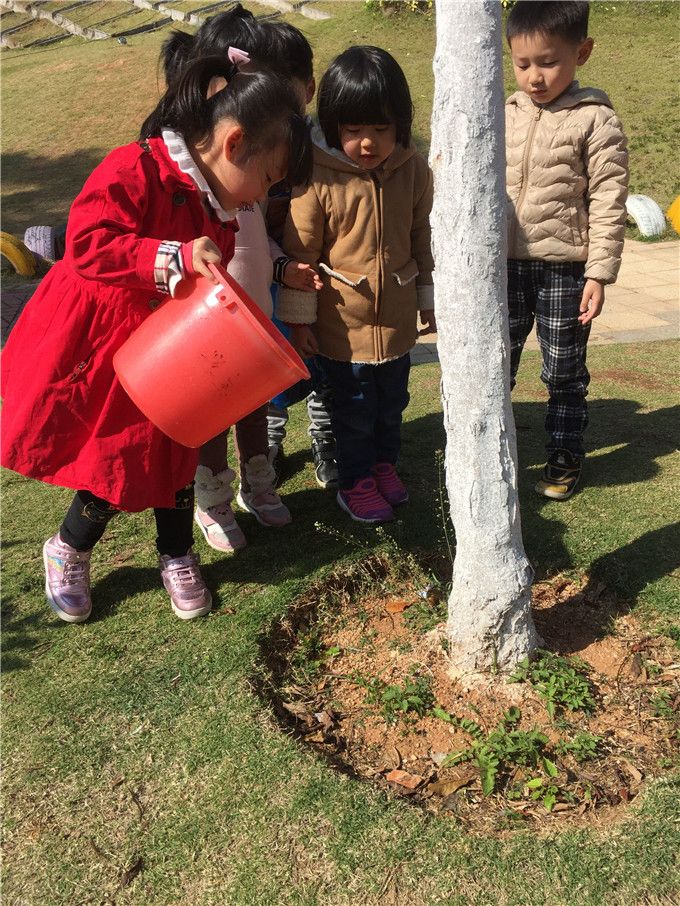 活动中孩子们用自己的语言讲述生活中环保小知识、用自己的行动育小树,在老师的带领下给小树浇水,大家一起分享植树的乐趣。