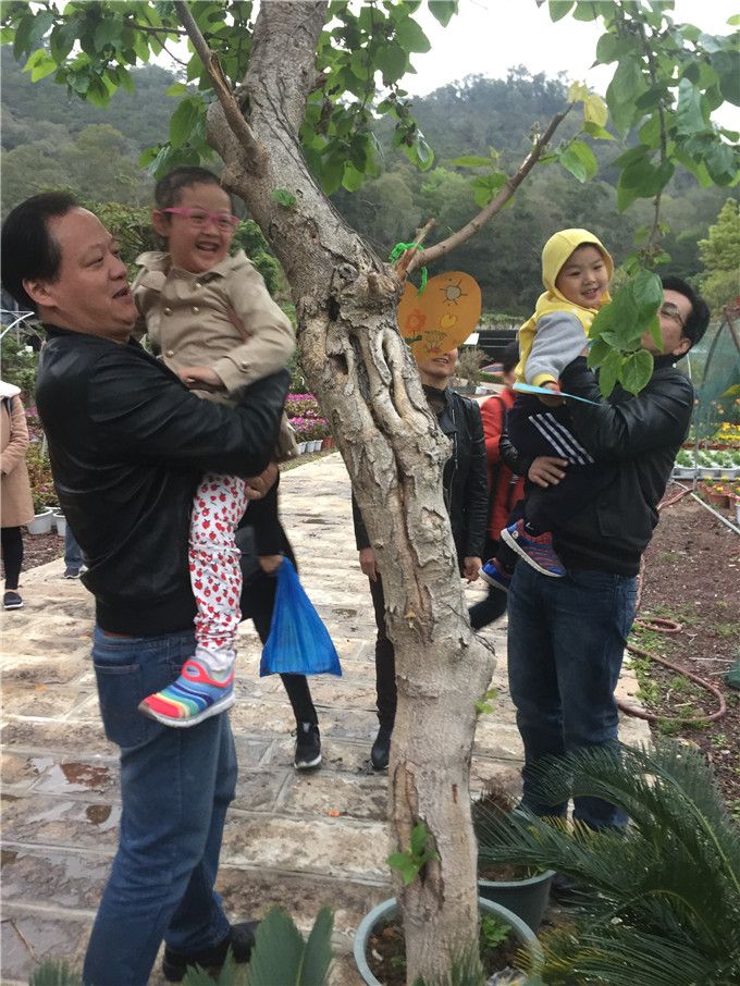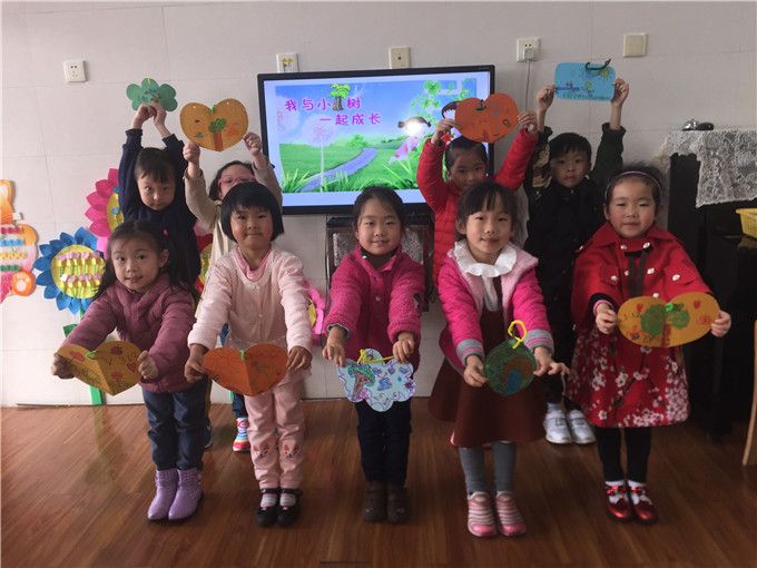 我和小树苗合影——挂牌合影。孩子们在自己制作的卡片上画上“爱心树”“心愿树”“成长树”,教育孩子爱护树木花草,认识各种树,了解保护小树的方法,轻轻抱一抱小树、对小树说说话,培育孩子爱护树、保护树的情感。