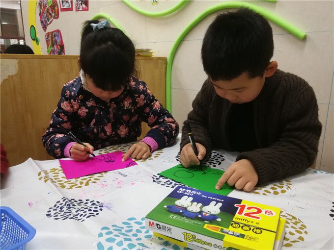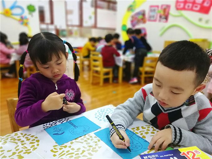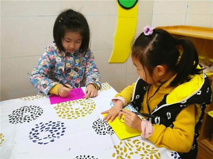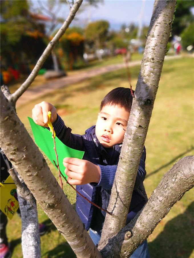 小米的提议也得到了小朋友们的认可,于是孩子们马上准备好各种材料,做起了护树卡。