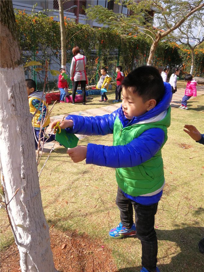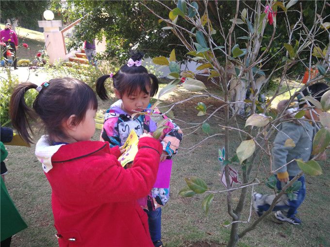 护树卡完成啦, 孩子们为每一棵小树“量身定制”了标志牌,并兴高采烈地来到小山坡,将这些标志牌亲手挂在每一颗大树上,把美好的祝愿送给每一棵小树,并提醒大家要爱护小树苗。孩子们用充满童真的行动表达着他们对花草树木的爱护。